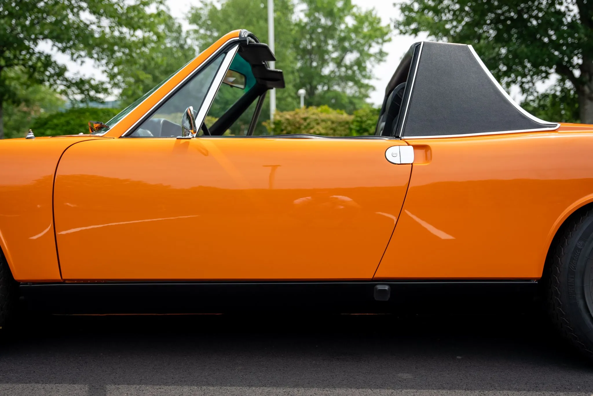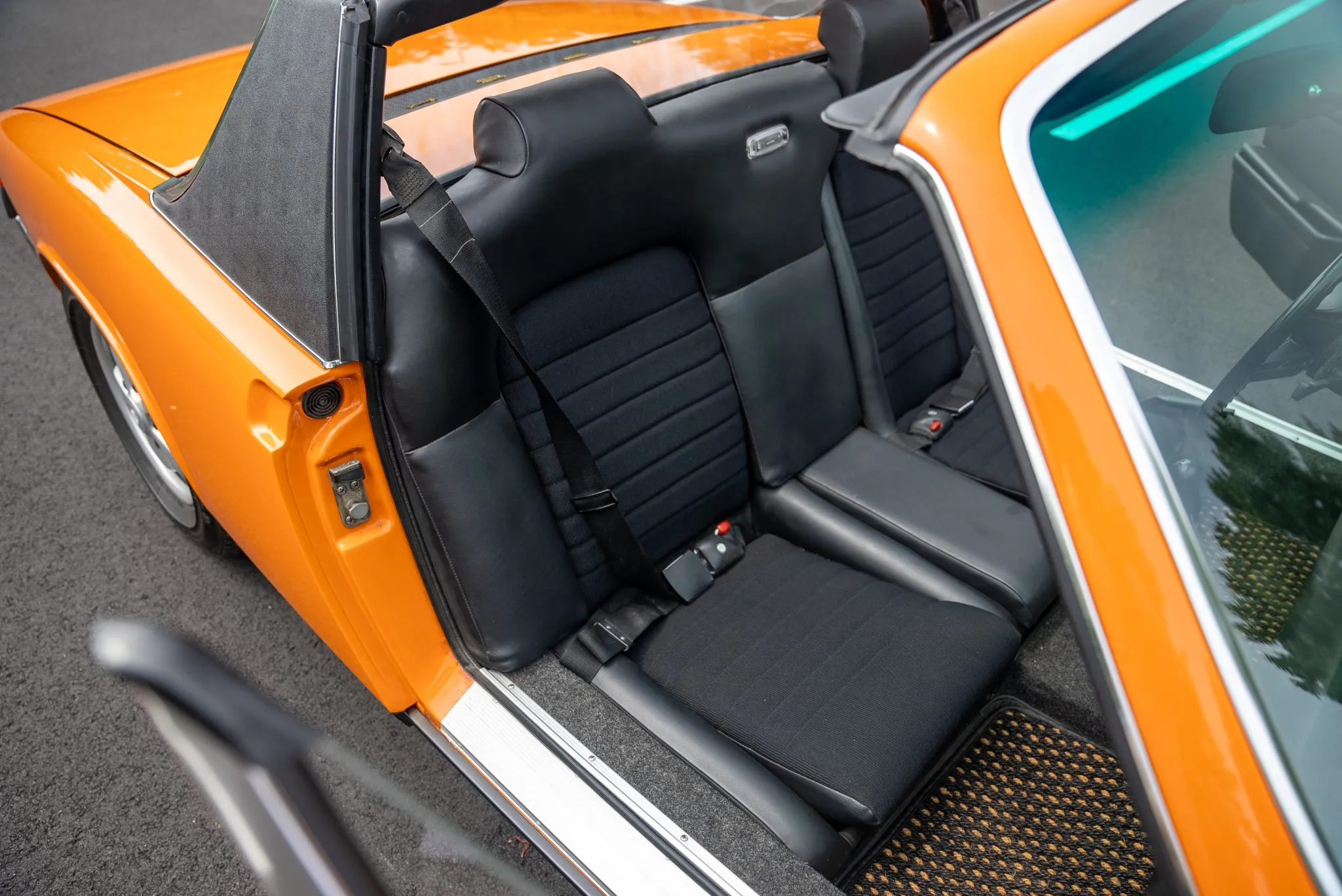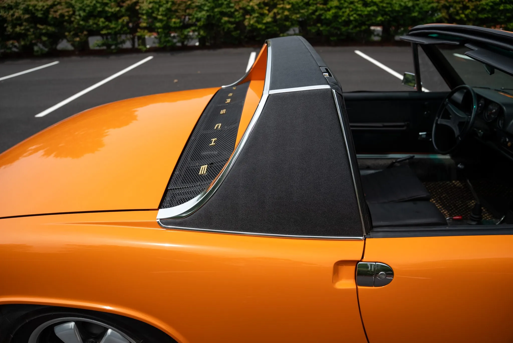 Removable Targa Top – Black vinyl, recently reupholstered for a tight fit and a clean look.