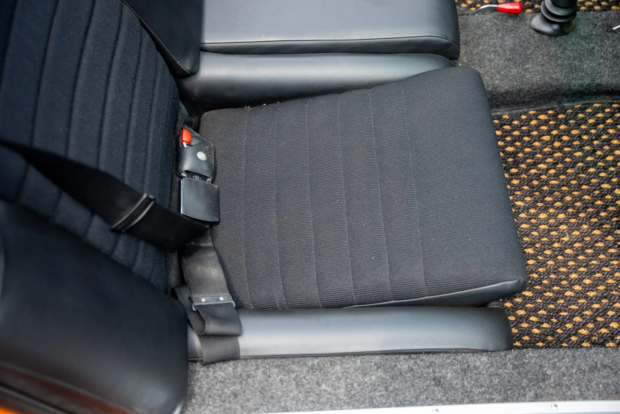 Black Vinyl Upholstery with Corduroy Inserts – Durable, factory-style seats with a distinctive corduroy center insert for added comfort.