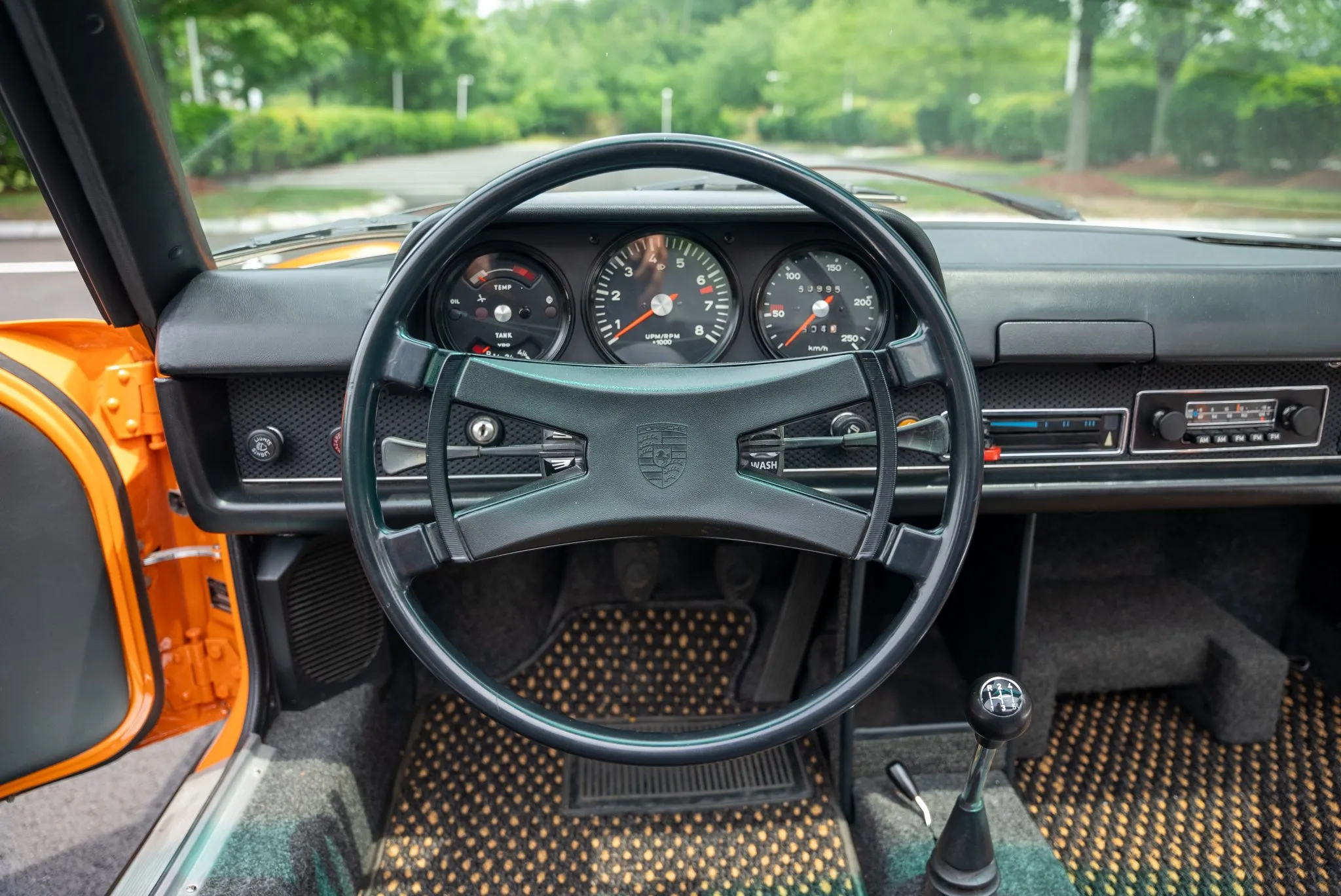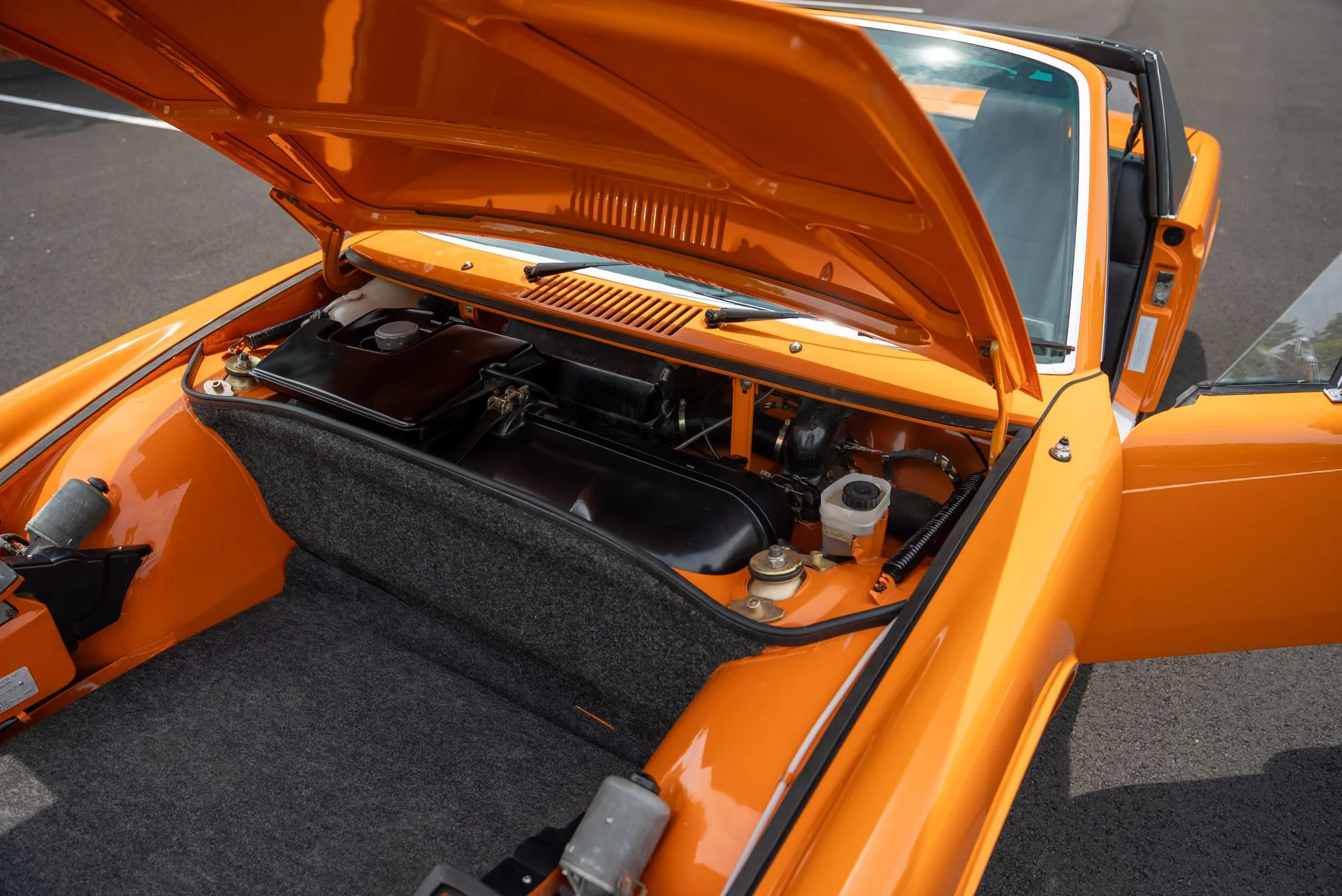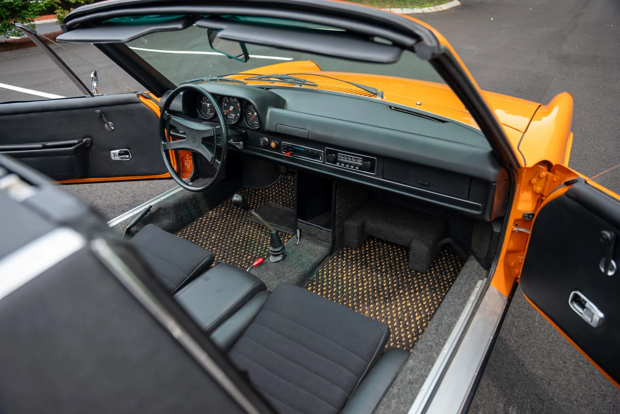 Under the rear deck, the mid-mounted 2.0L 901/3 flat-six engine has been carefully rebuilt and now runs with enhanced performance, featuring a Weber induction system and a new electronic ignition. The oil cooler and windshield fluid reservoir have been replaced, and the engine has received a full valve adjustment to ensure peak performance. The five-speed transaxle, also rebuilt, offers precision shifting and contributes to the car’s overall driving experience.