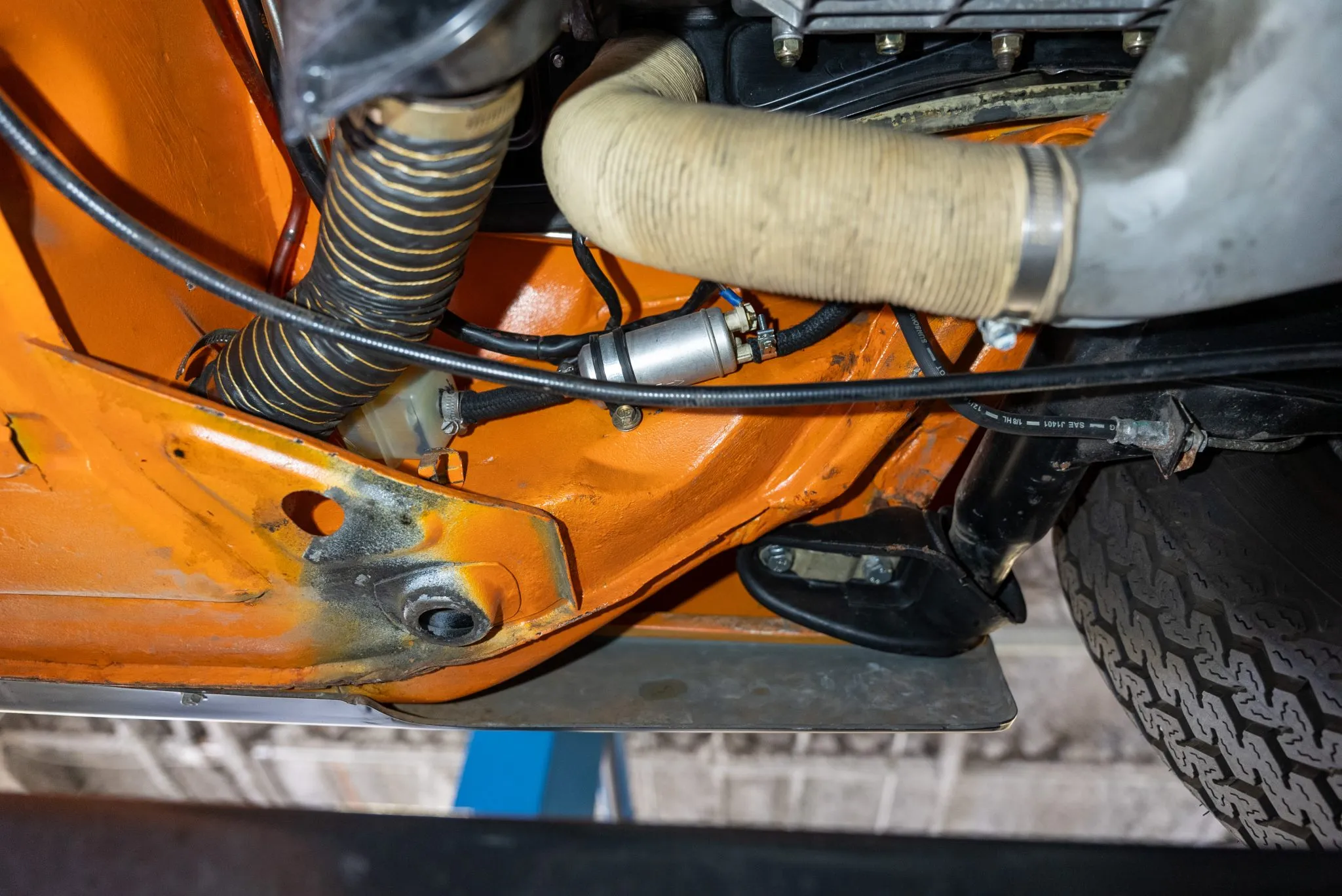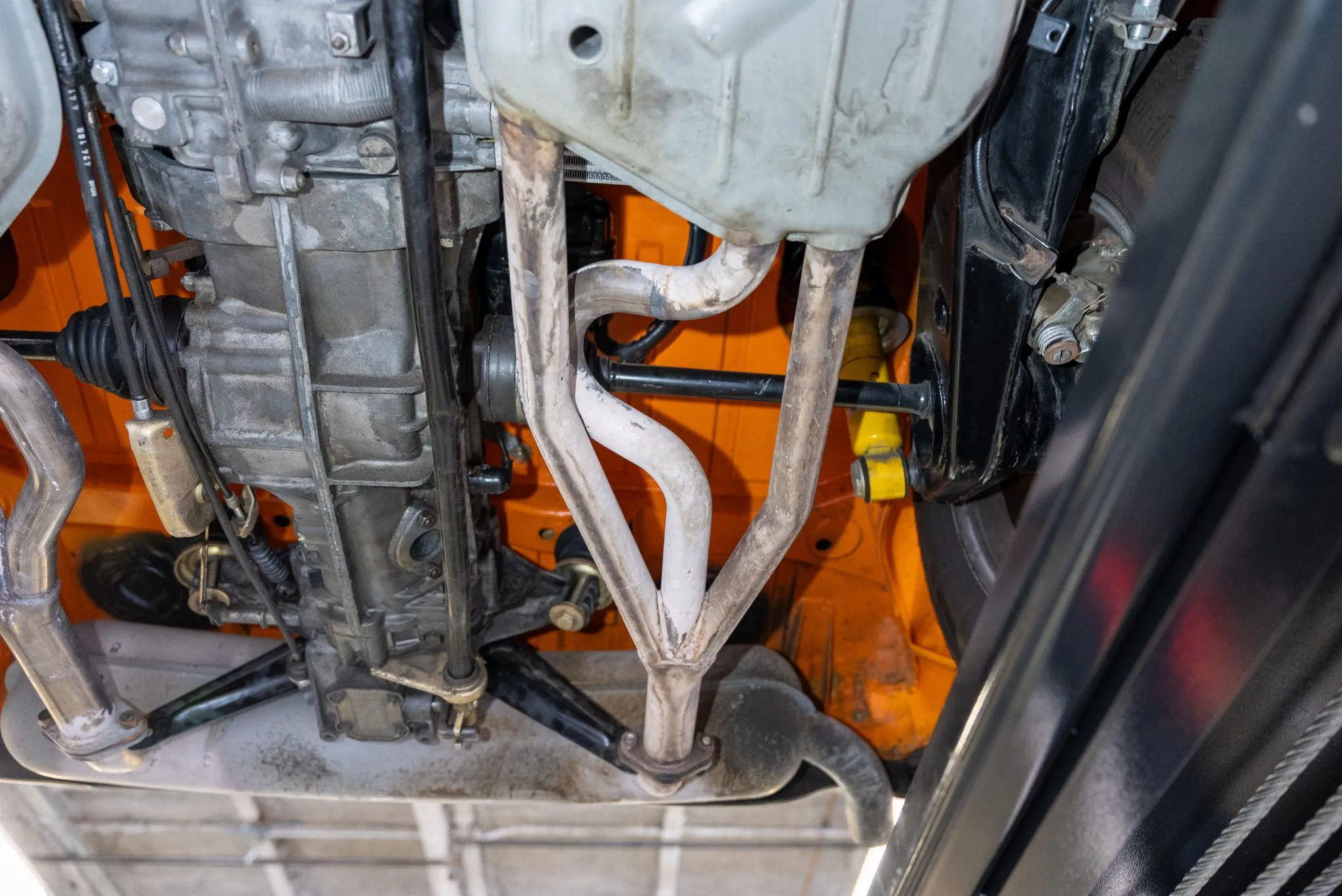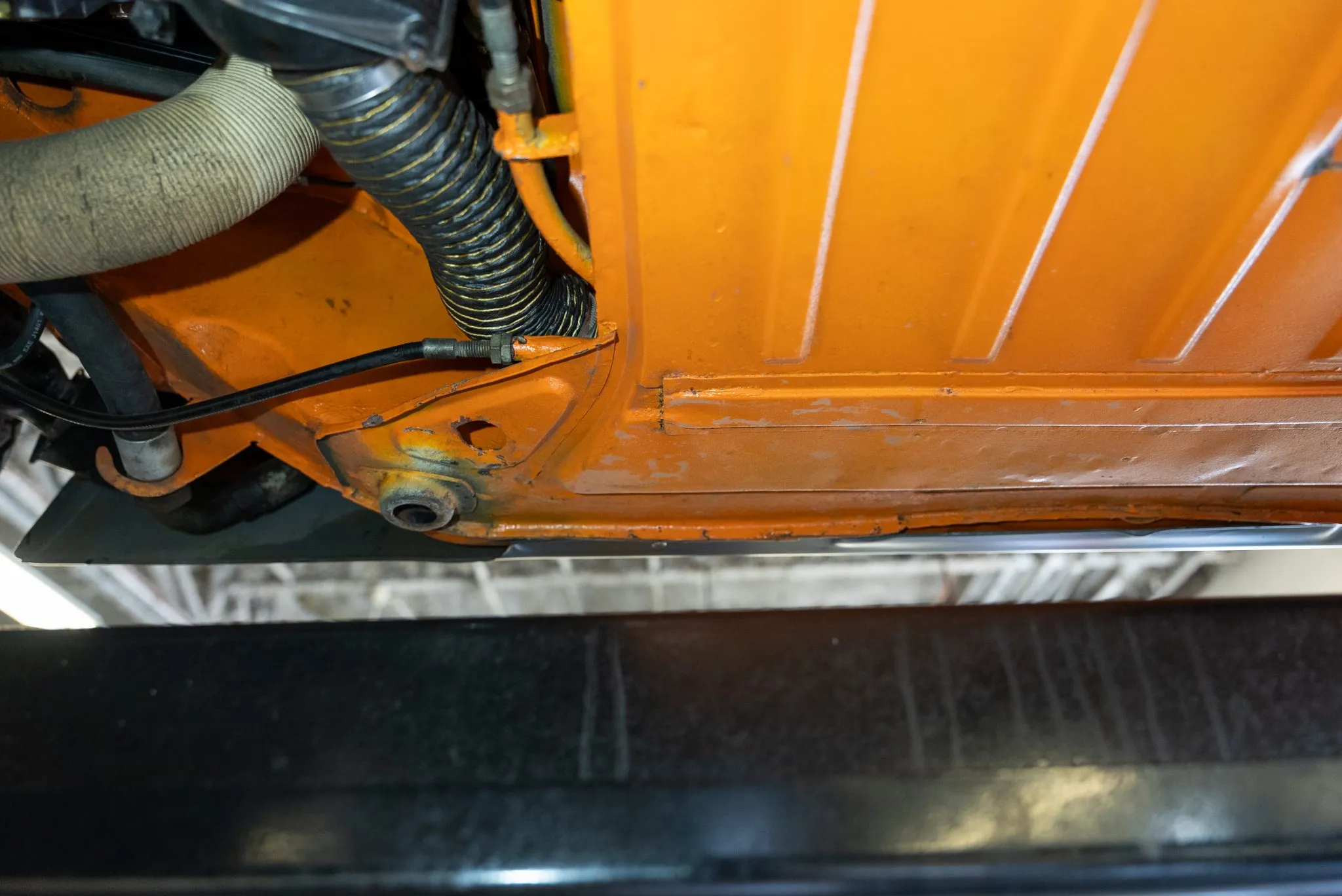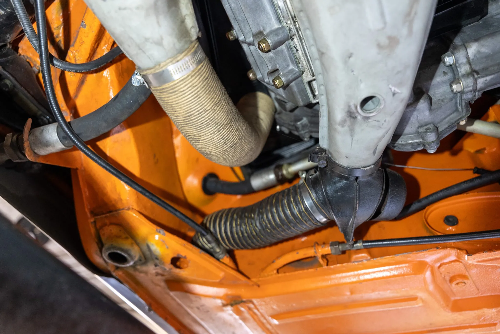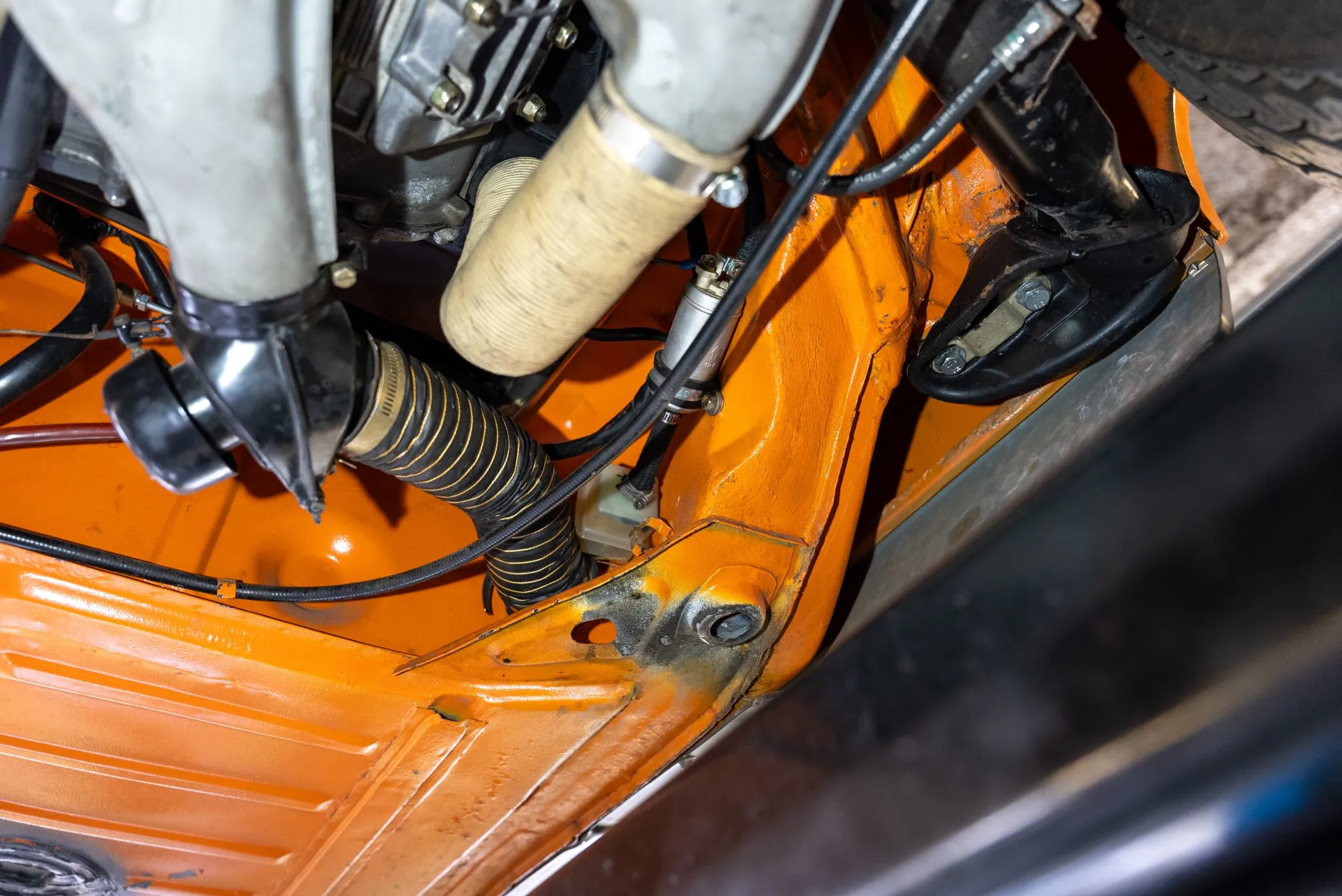 Signal Orange Paint – Freshly applied after rust repairs, delivering a factory-correct finish.
