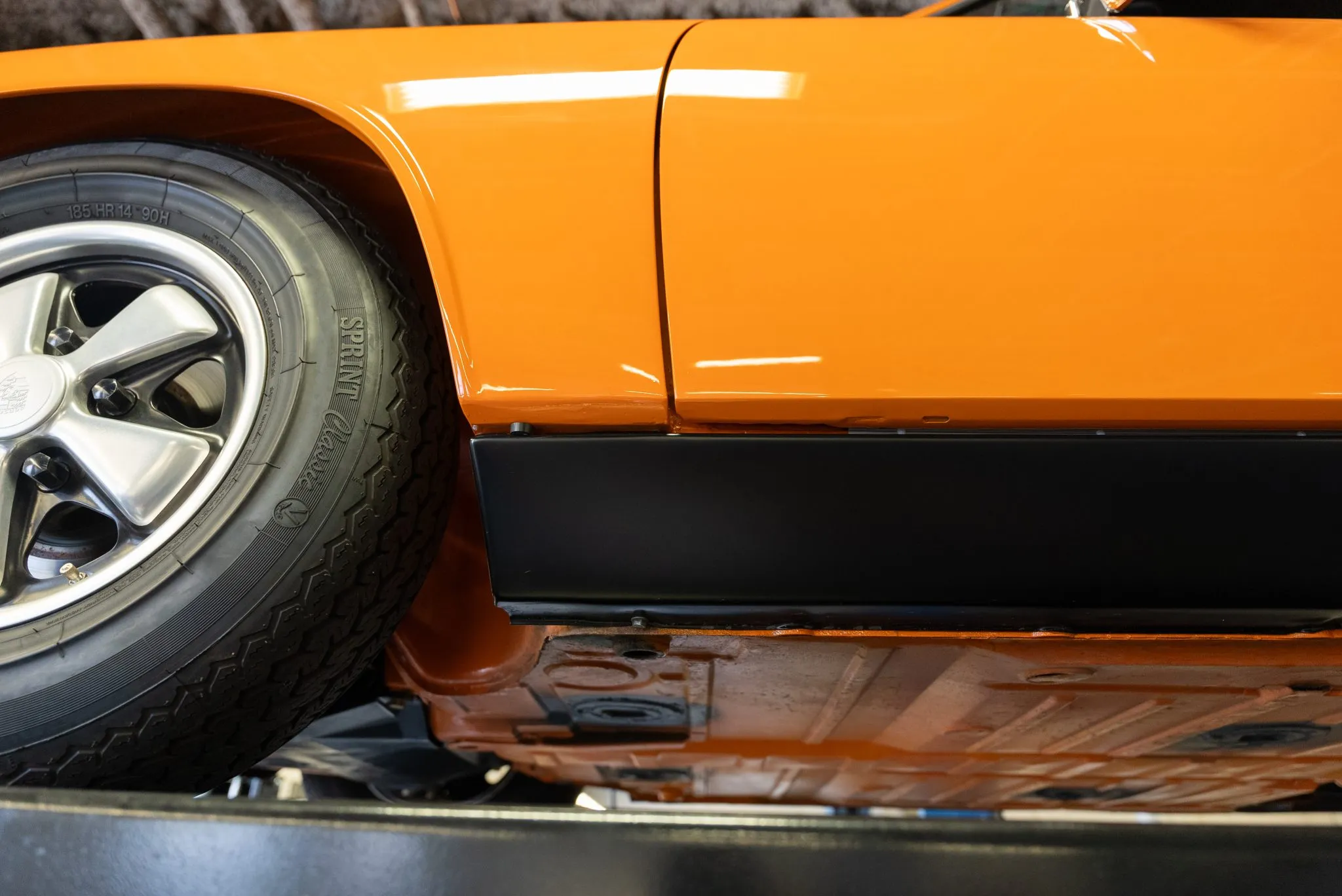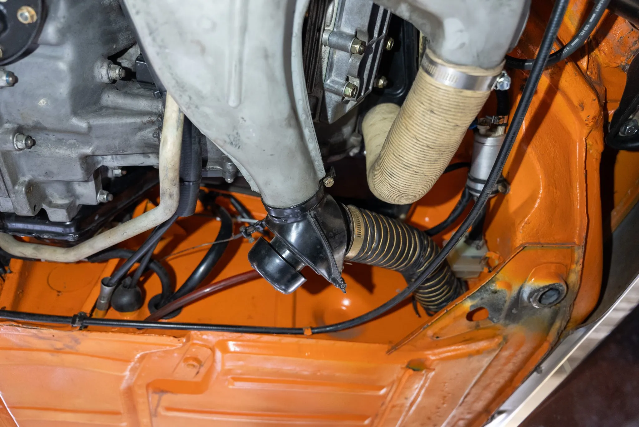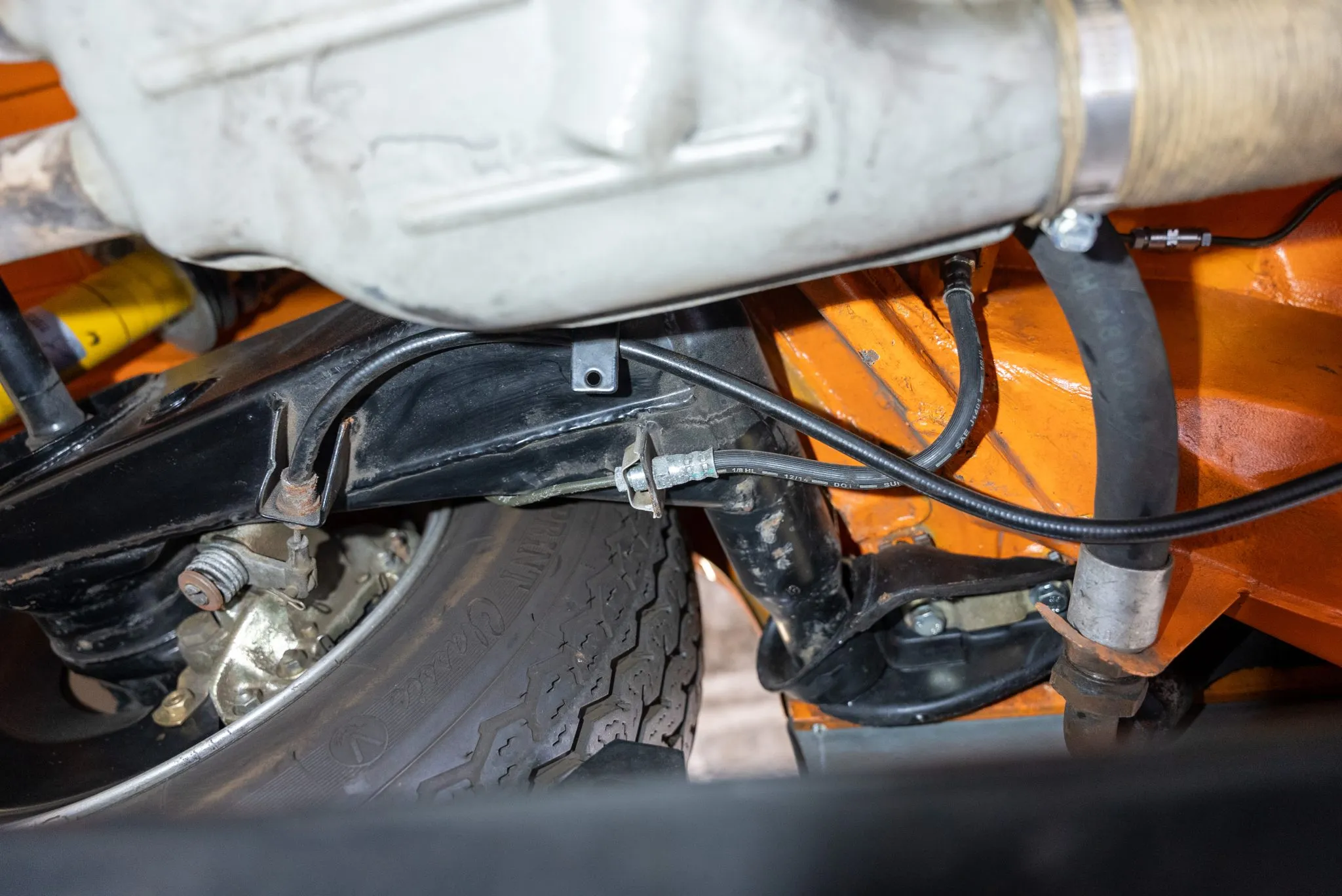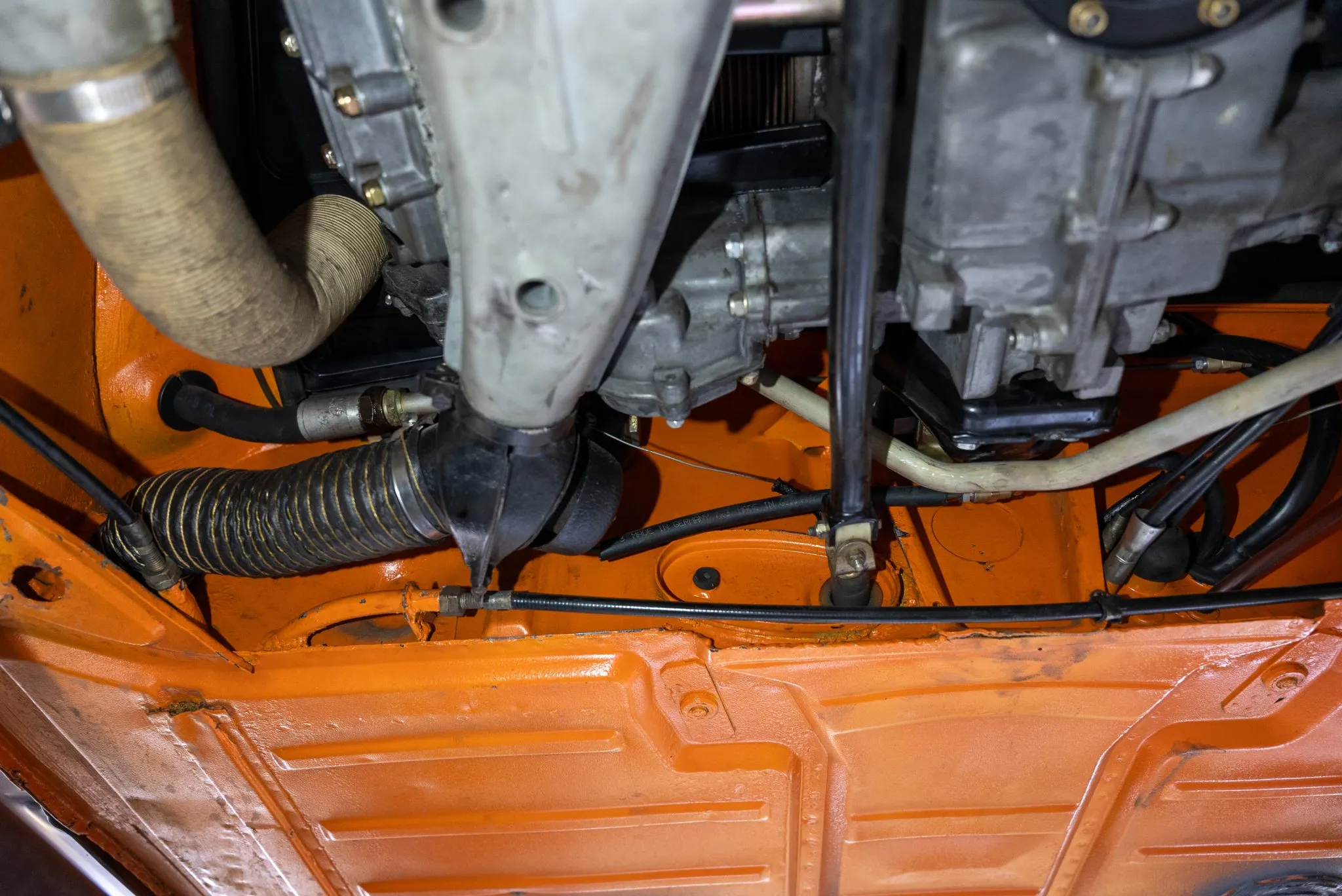 Signal Orange Paint – Freshly applied after rust repairs, delivering a factory-correct finish.