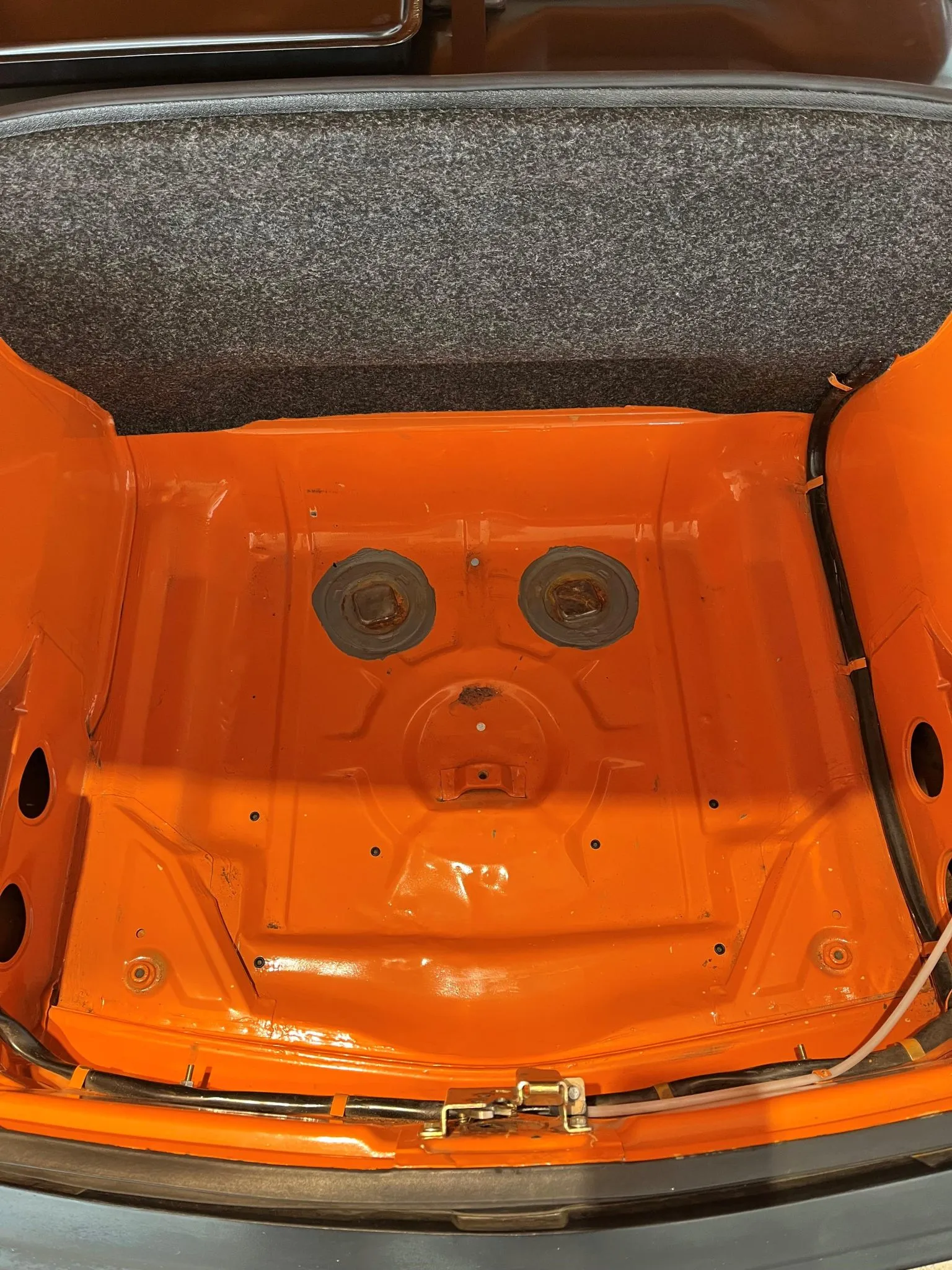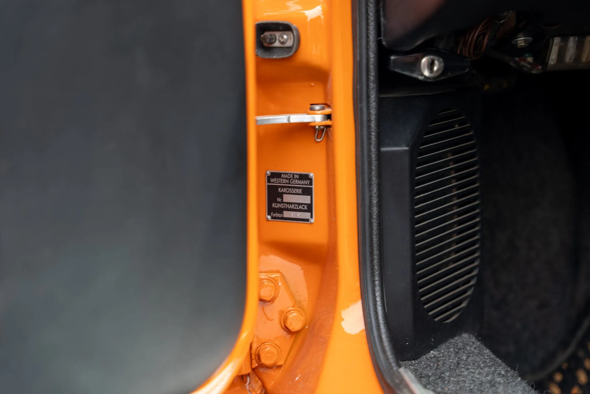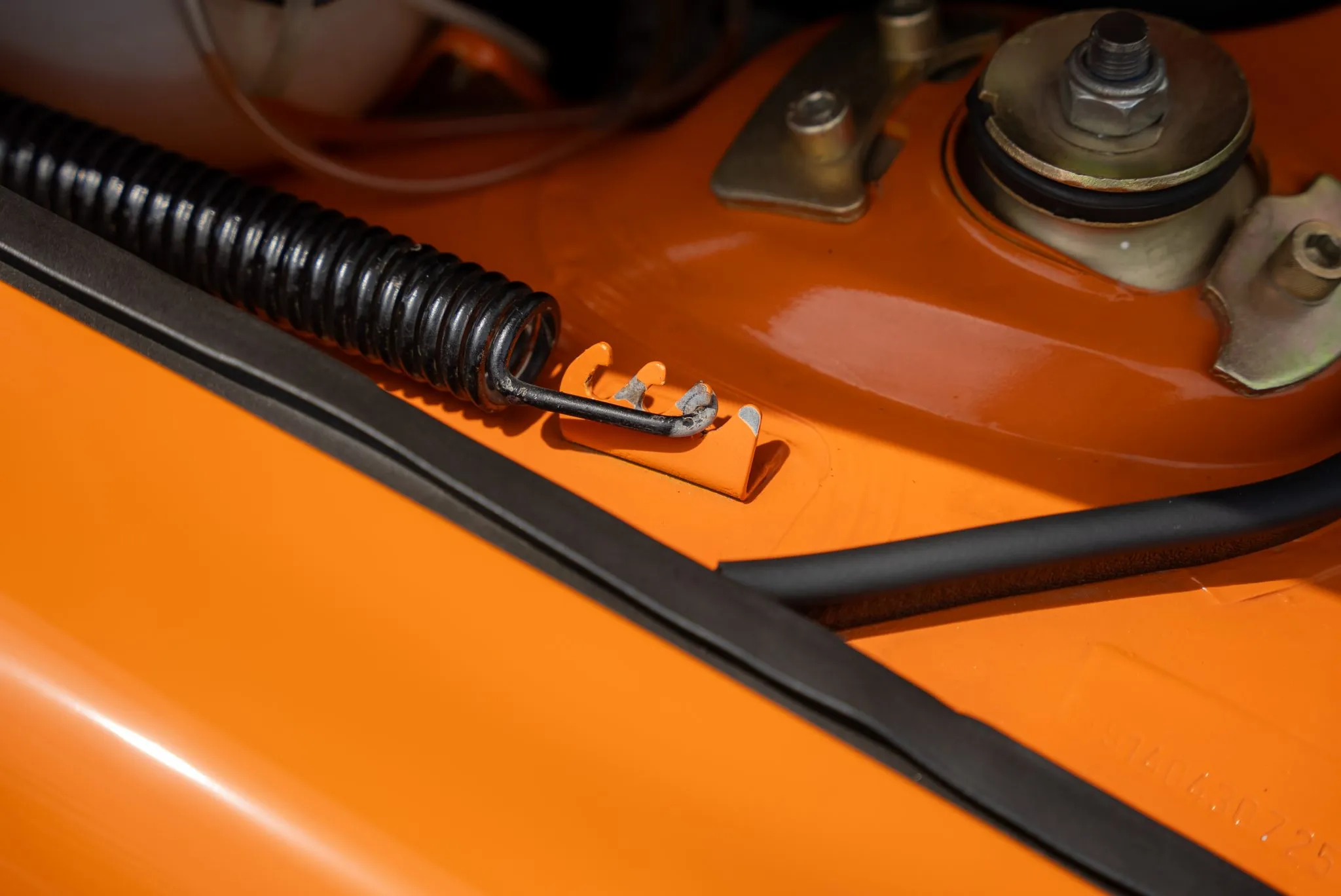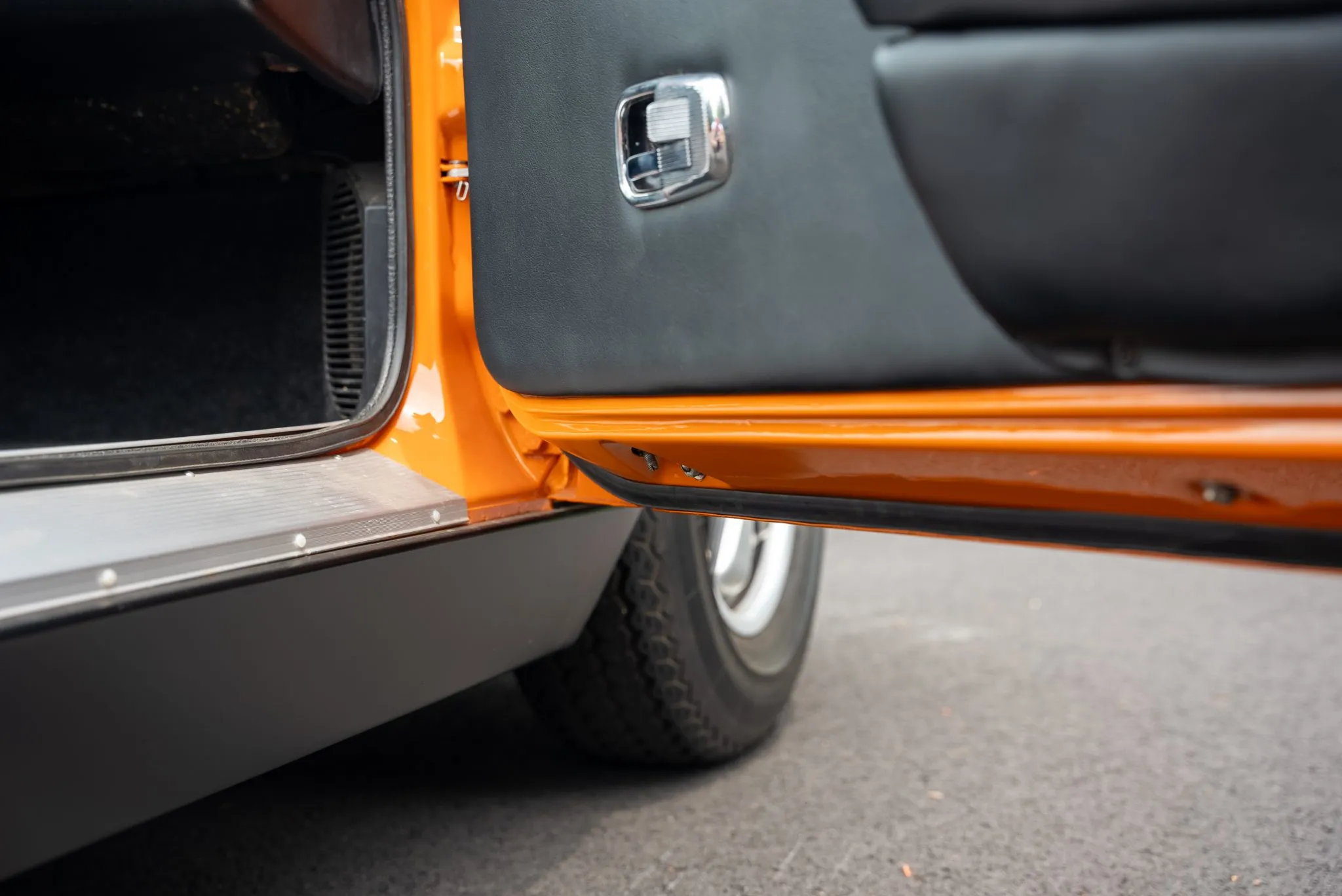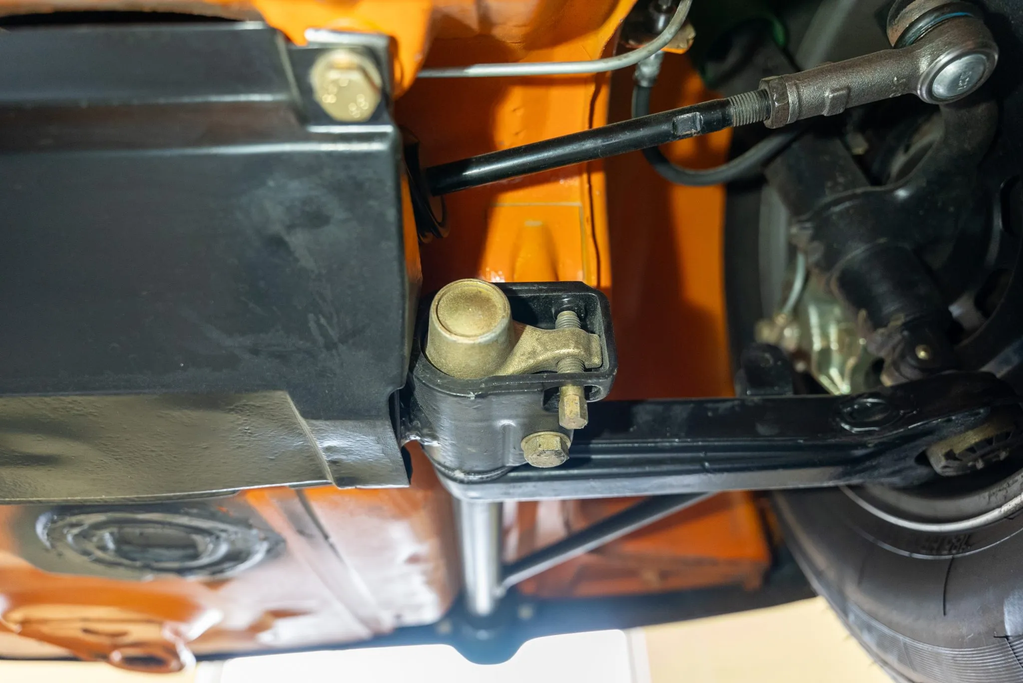 Signal Orange Paint – Freshly applied after rust repairs, delivering a factory-correct finish.