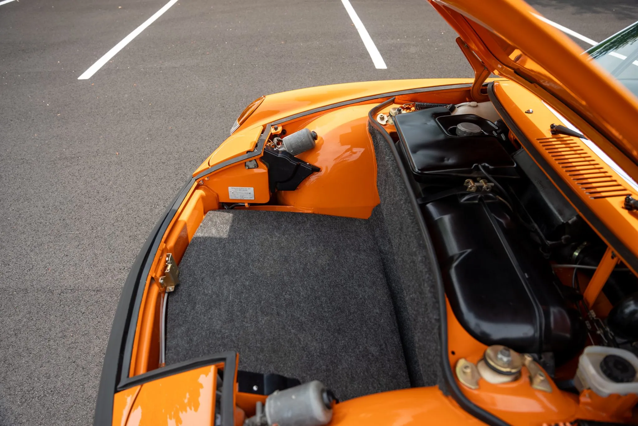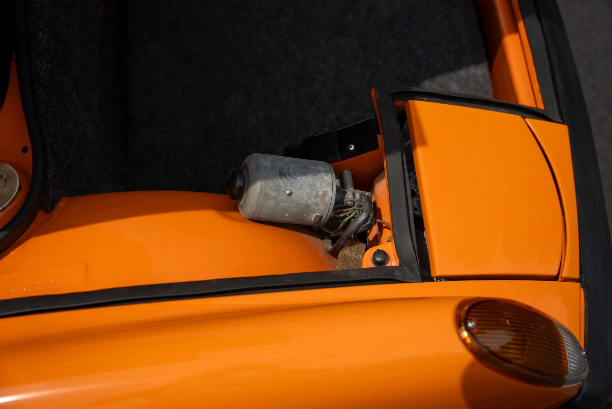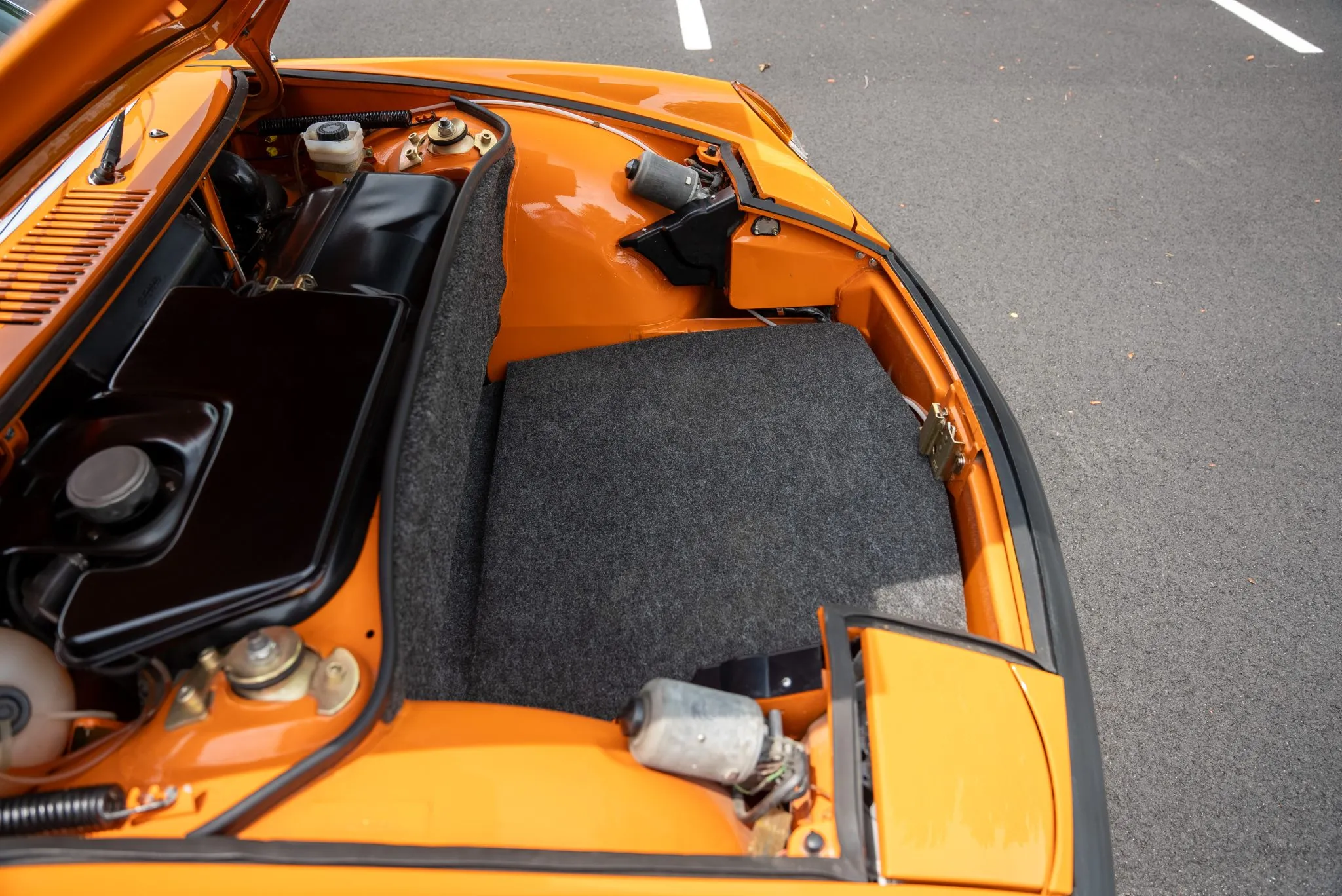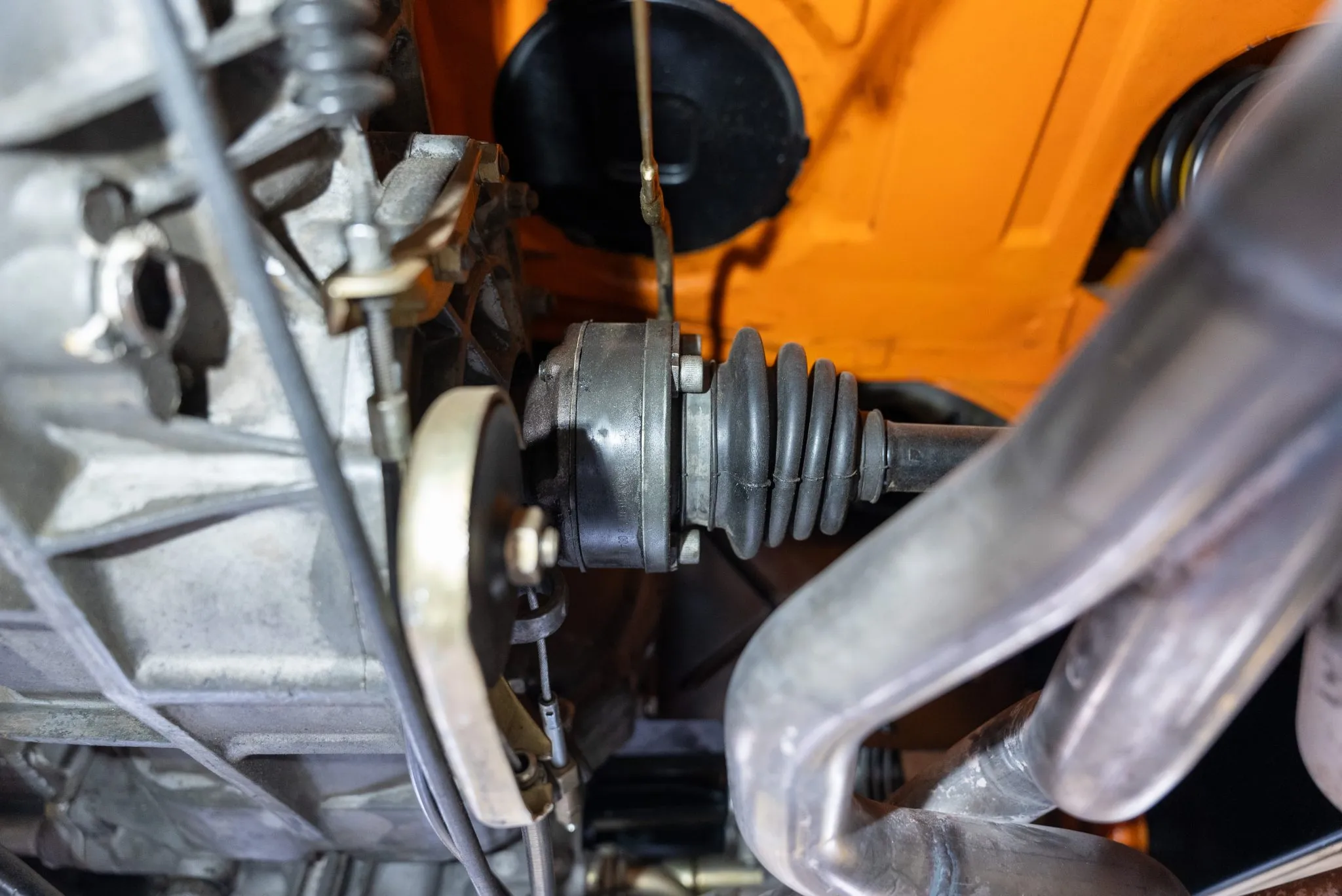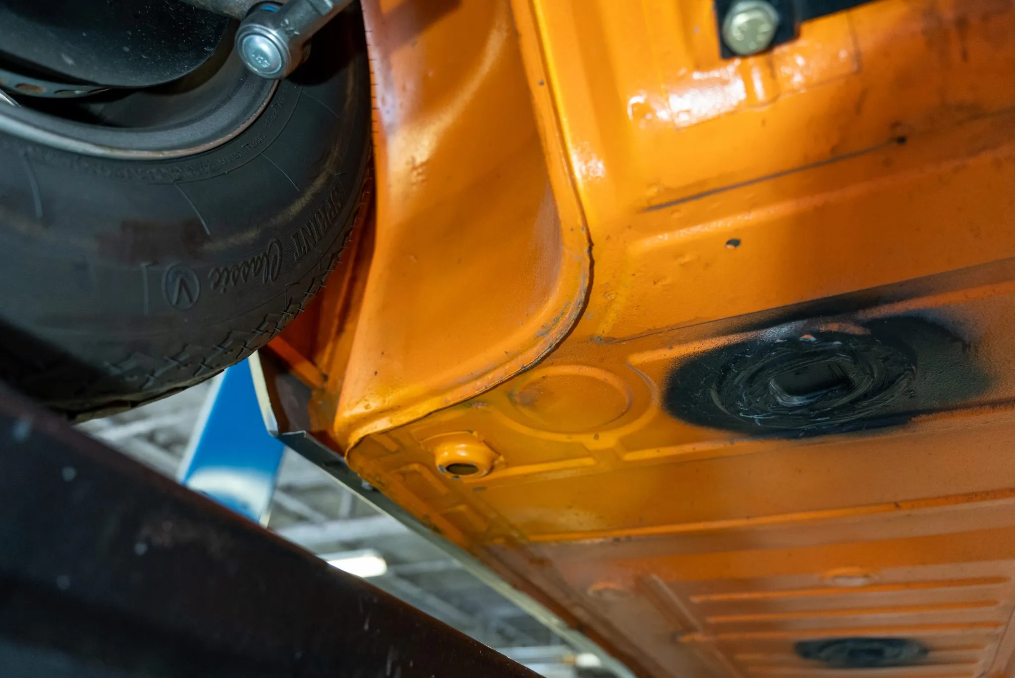 Signal Orange Paint – Freshly applied after rust repairs, delivering a factory-correct finish.
