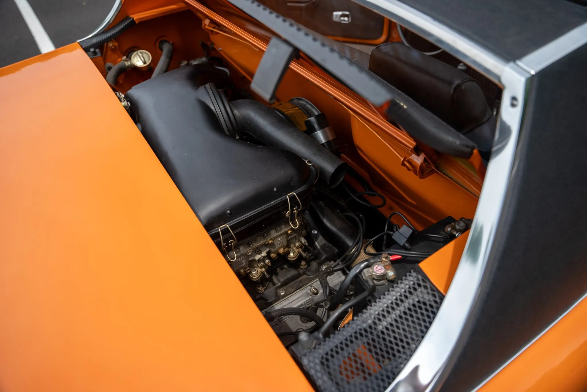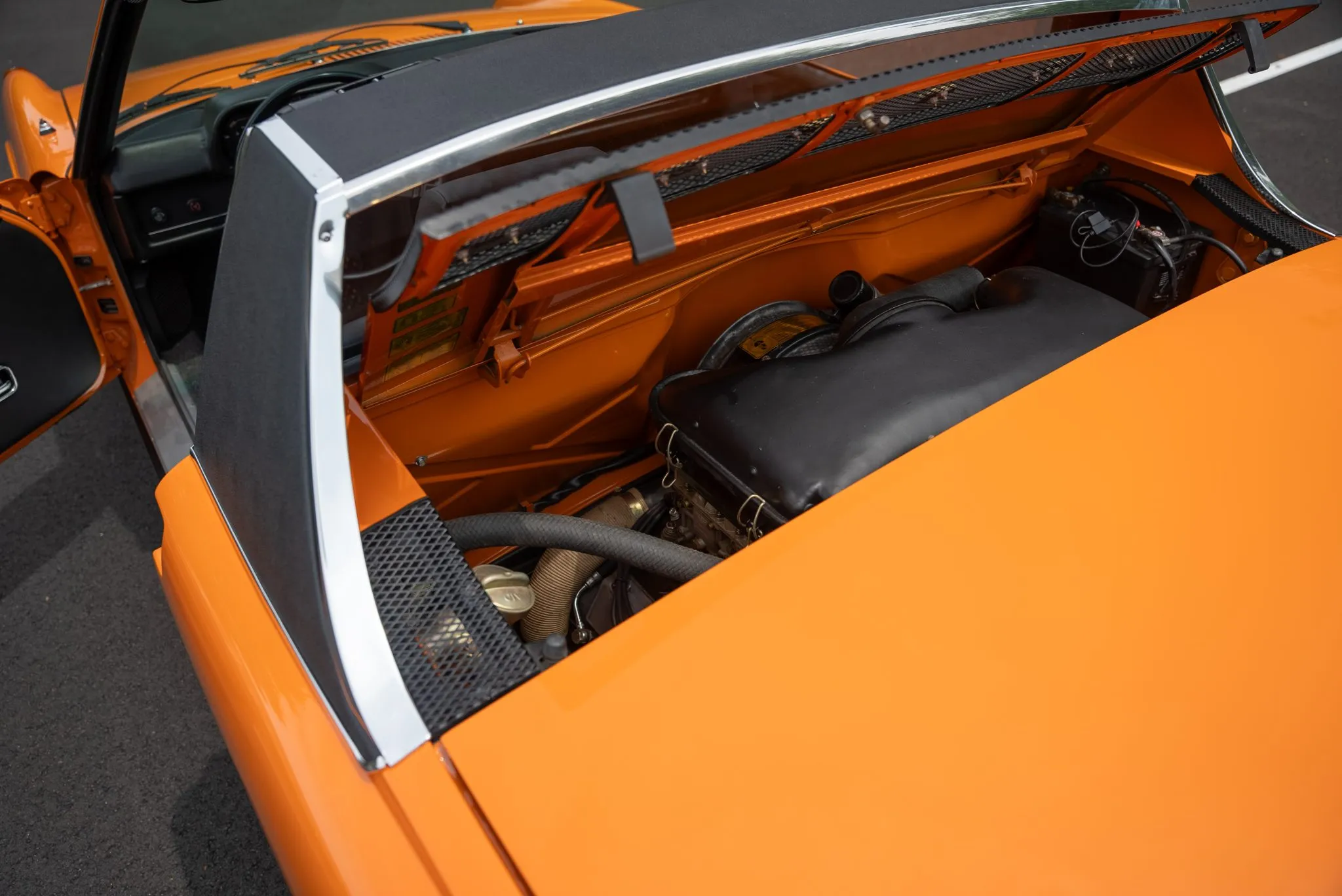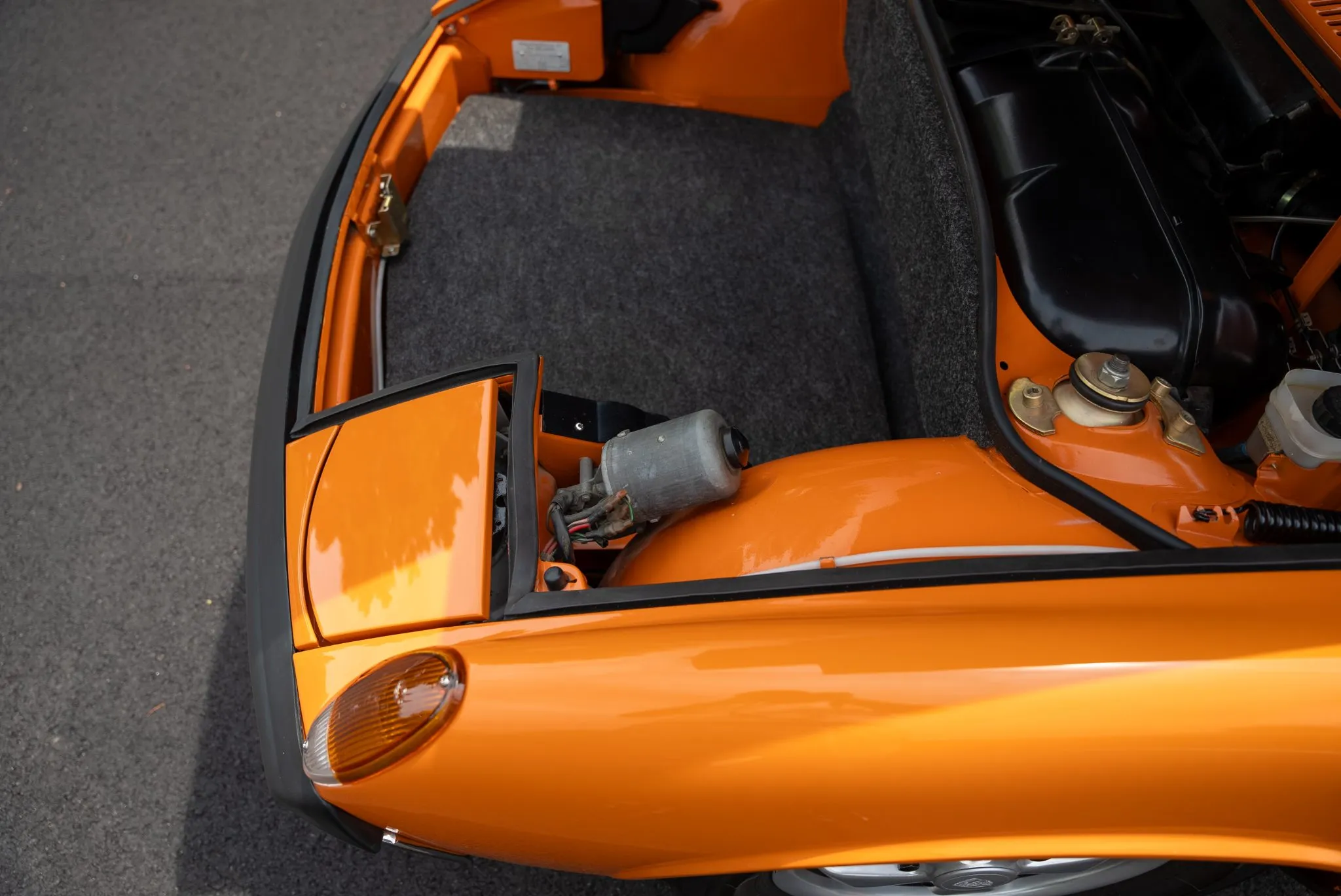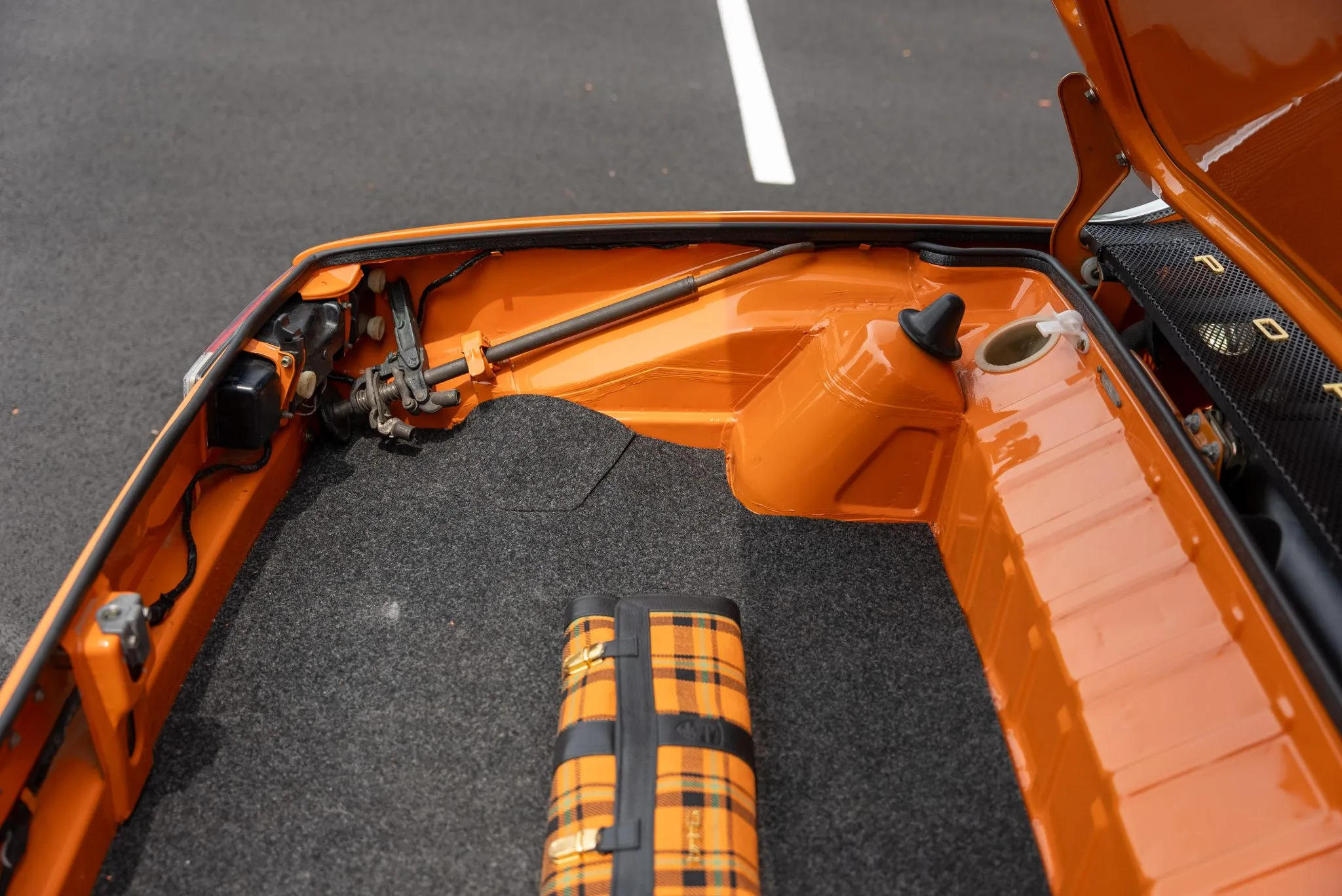 Signal Orange Paint – Freshly applied after rust repairs, delivering a factory-correct finish.