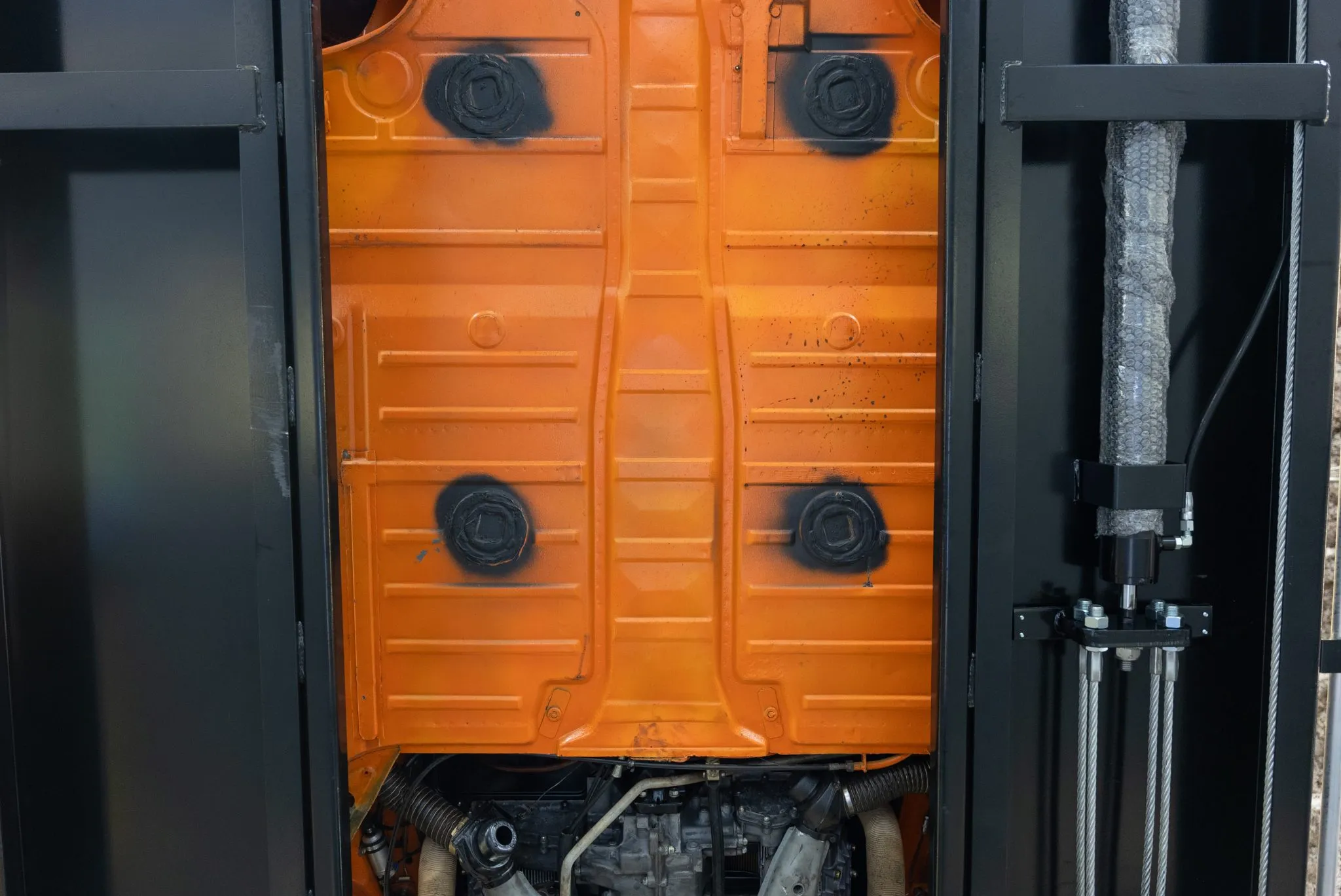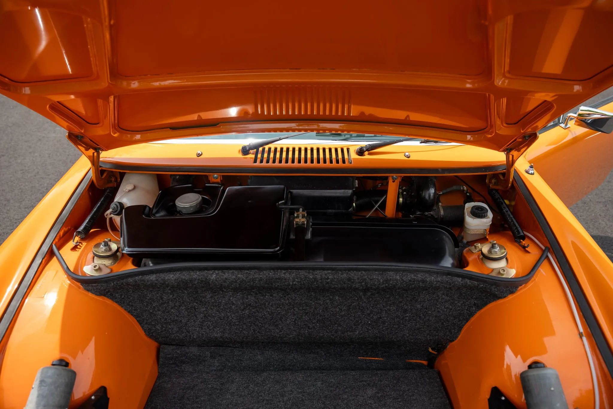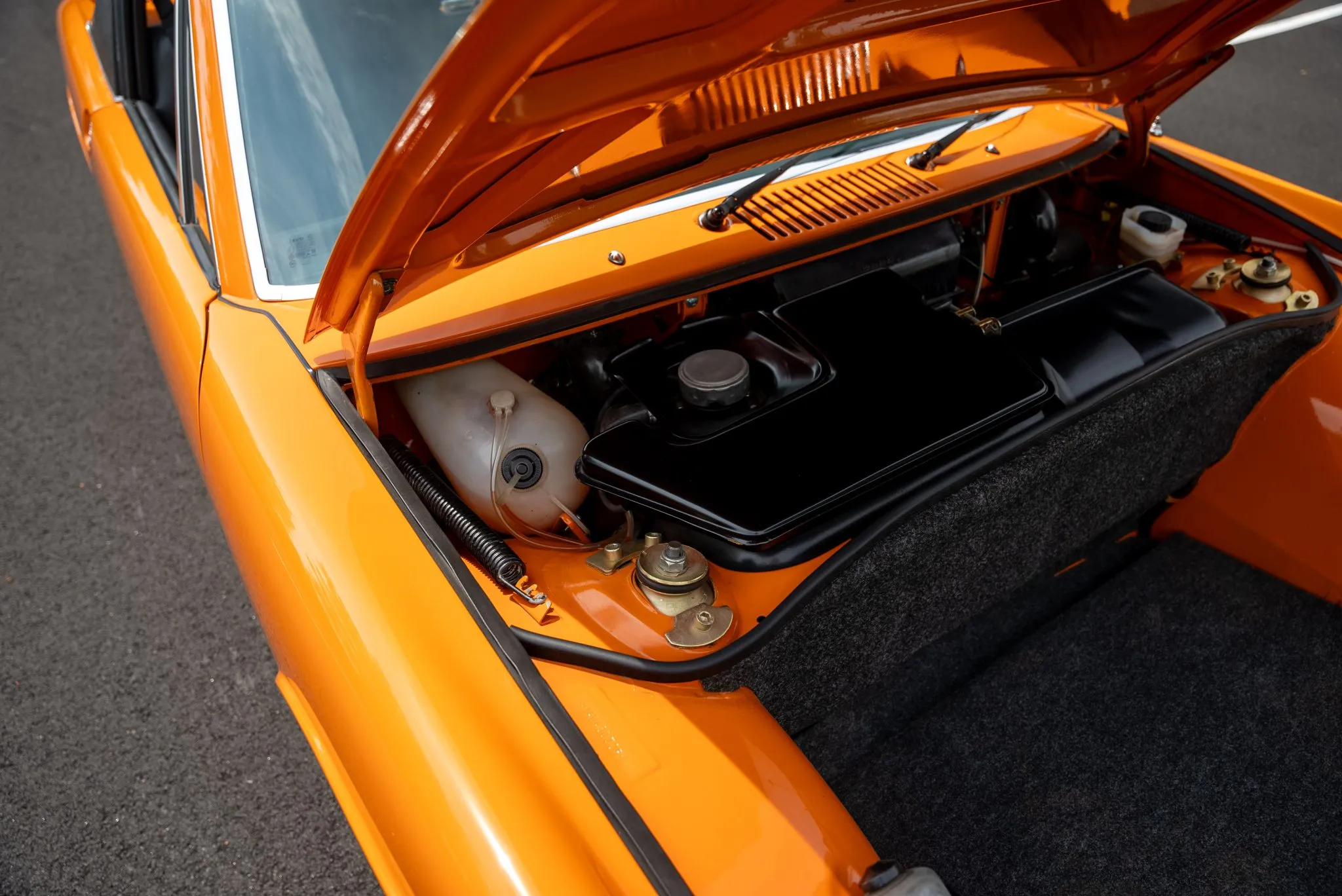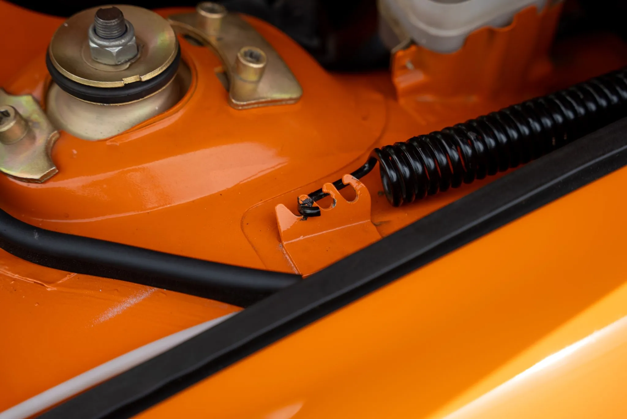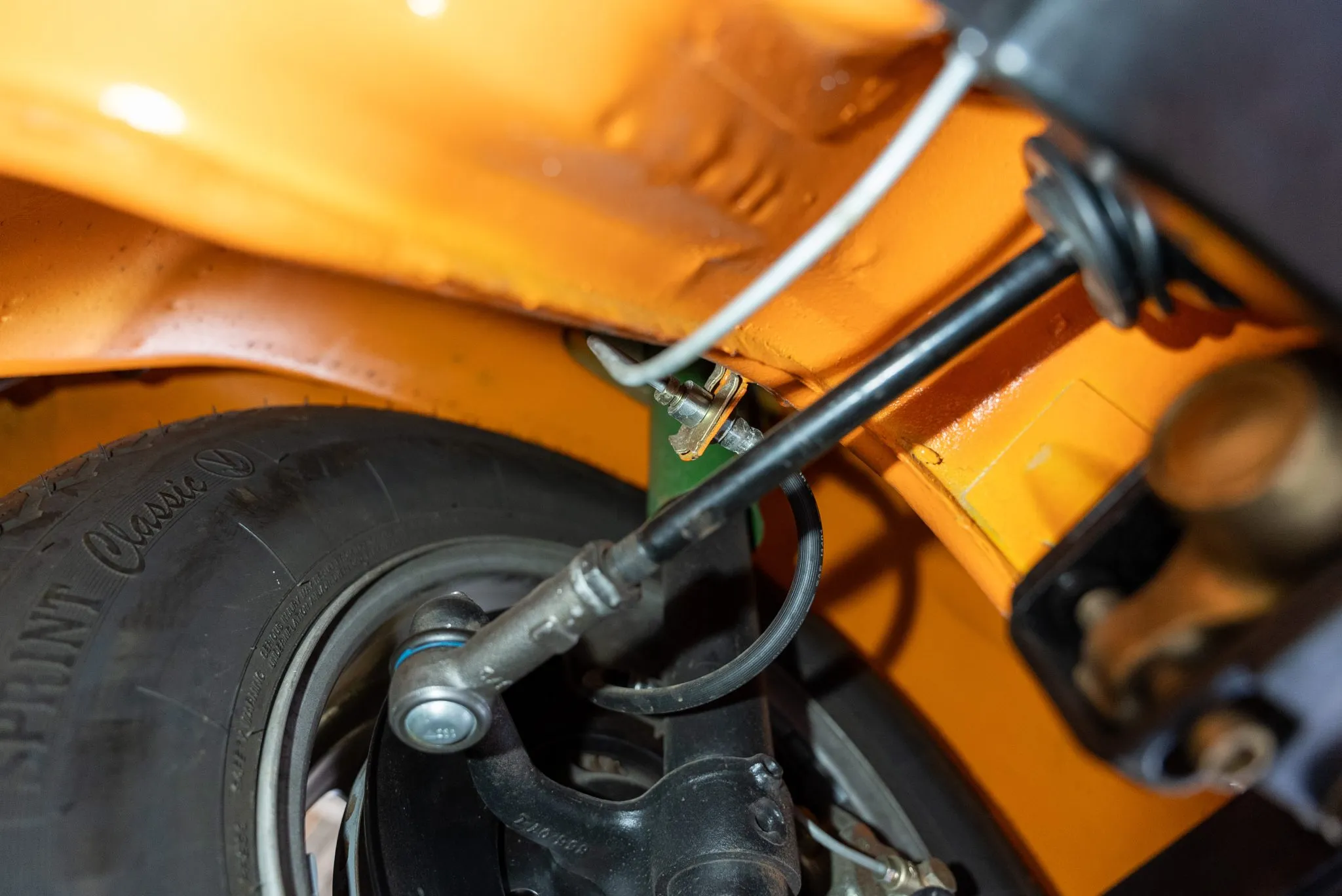 Signal Orange Paint – Freshly applied after rust repairs, delivering a factory-correct finish.