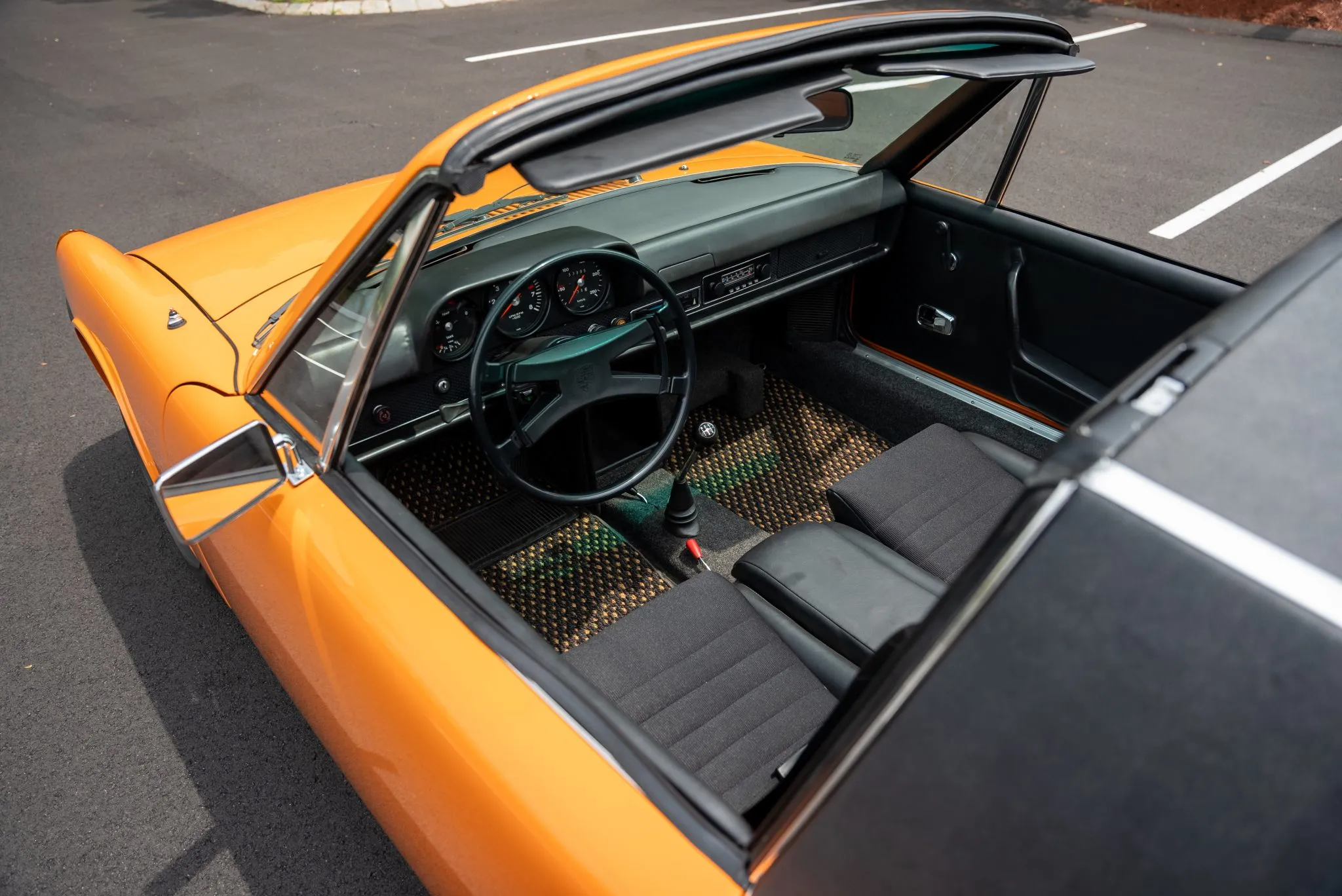 This exceptional Porsche Targa, finished in striking Signal Orange with black upholstery and distinctive corduroy seat inserts, has remained within the same family for over three decades. With extensive refurbishment and attention to detail, this car offers both performance and style, making it a standout example in its class.