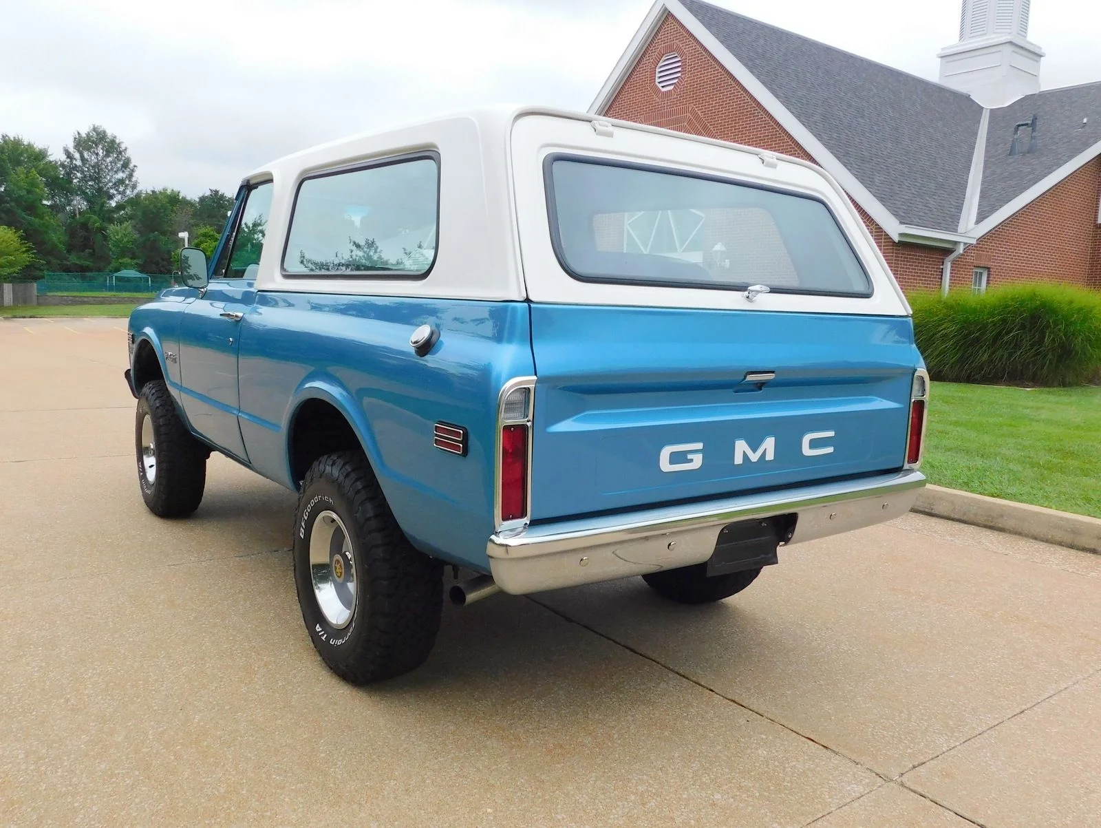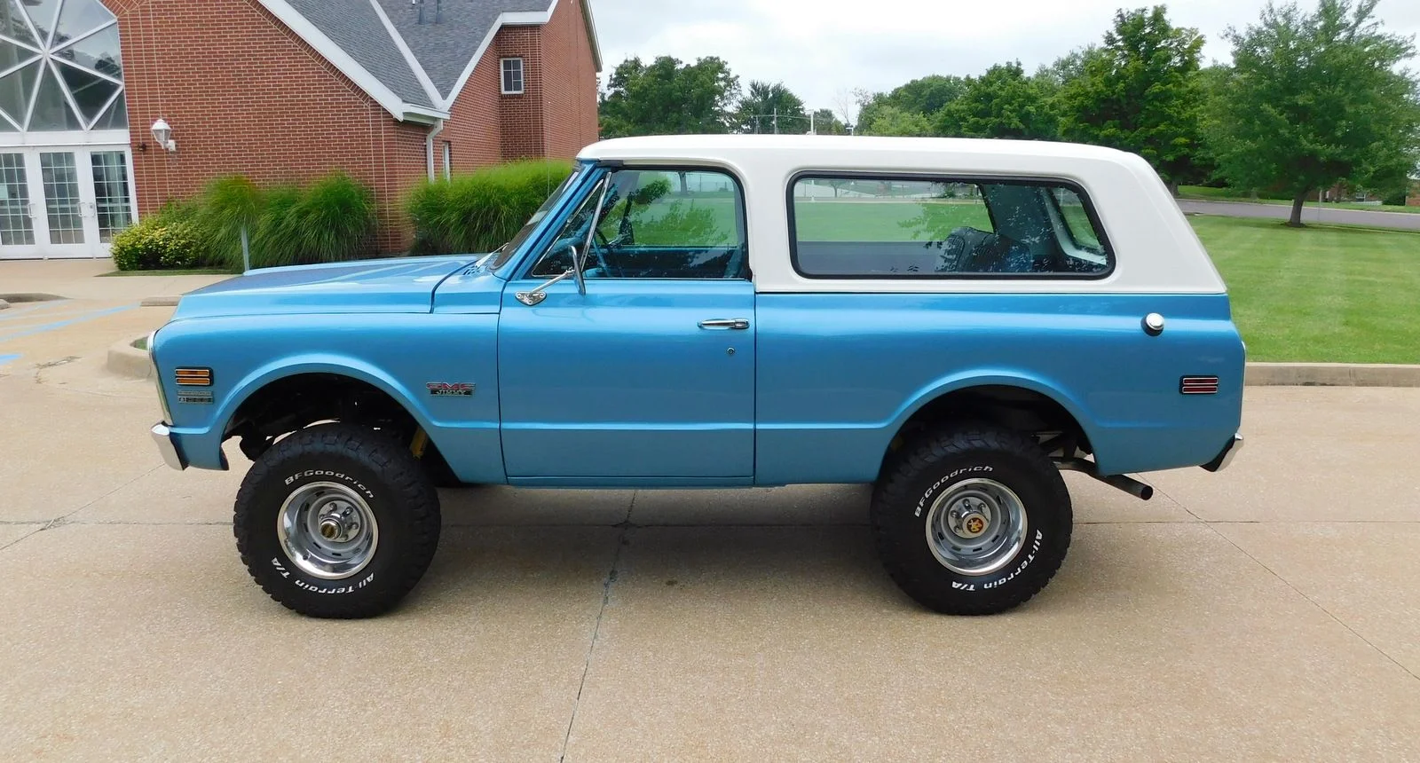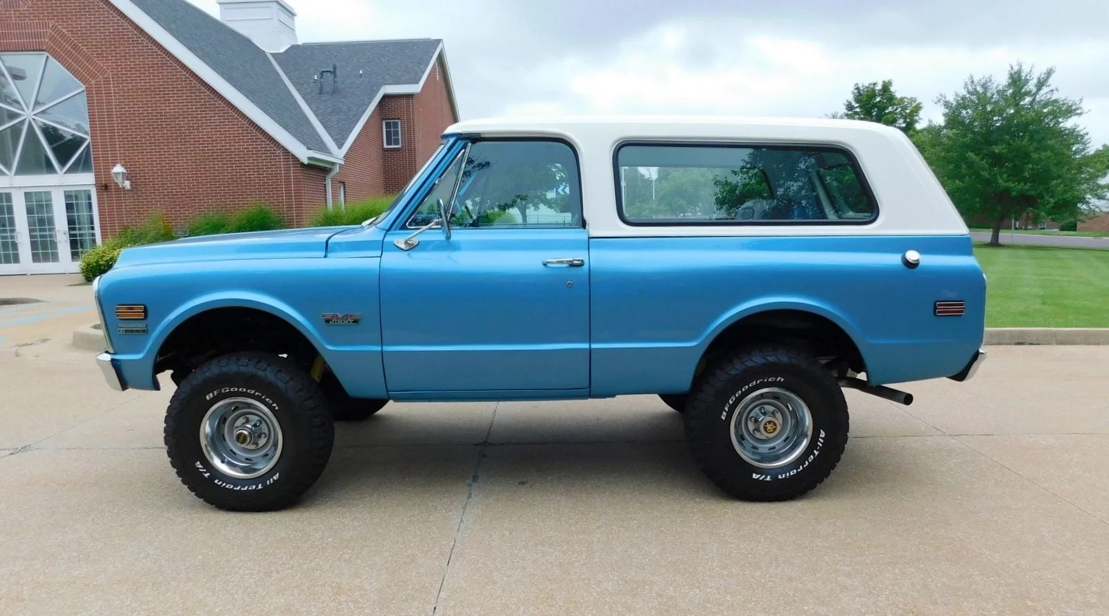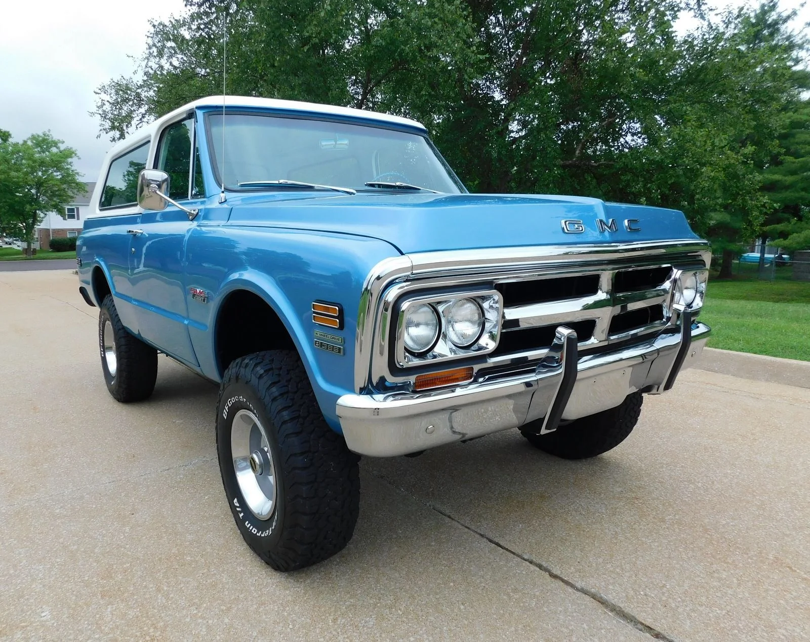 This 1971 GMC Jimmy 4X4 is powered by a 396ci Big Block V8, paired with a 3-speed automatic transmission and a 12-bolt rear end. It’s equipped with power disc brakes, power steering, factory cold A/C, and bucket seats with a center console. The paint has a deep shine with perfect panel fitment. The chrome, trim, and bright work shine in the sun, and the interior looks like new.
