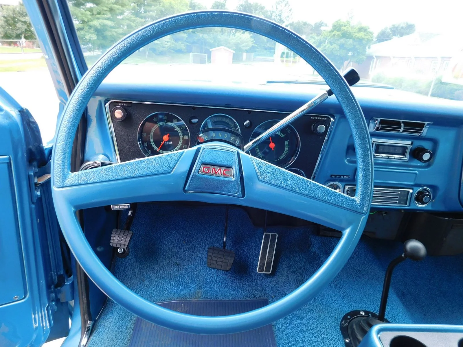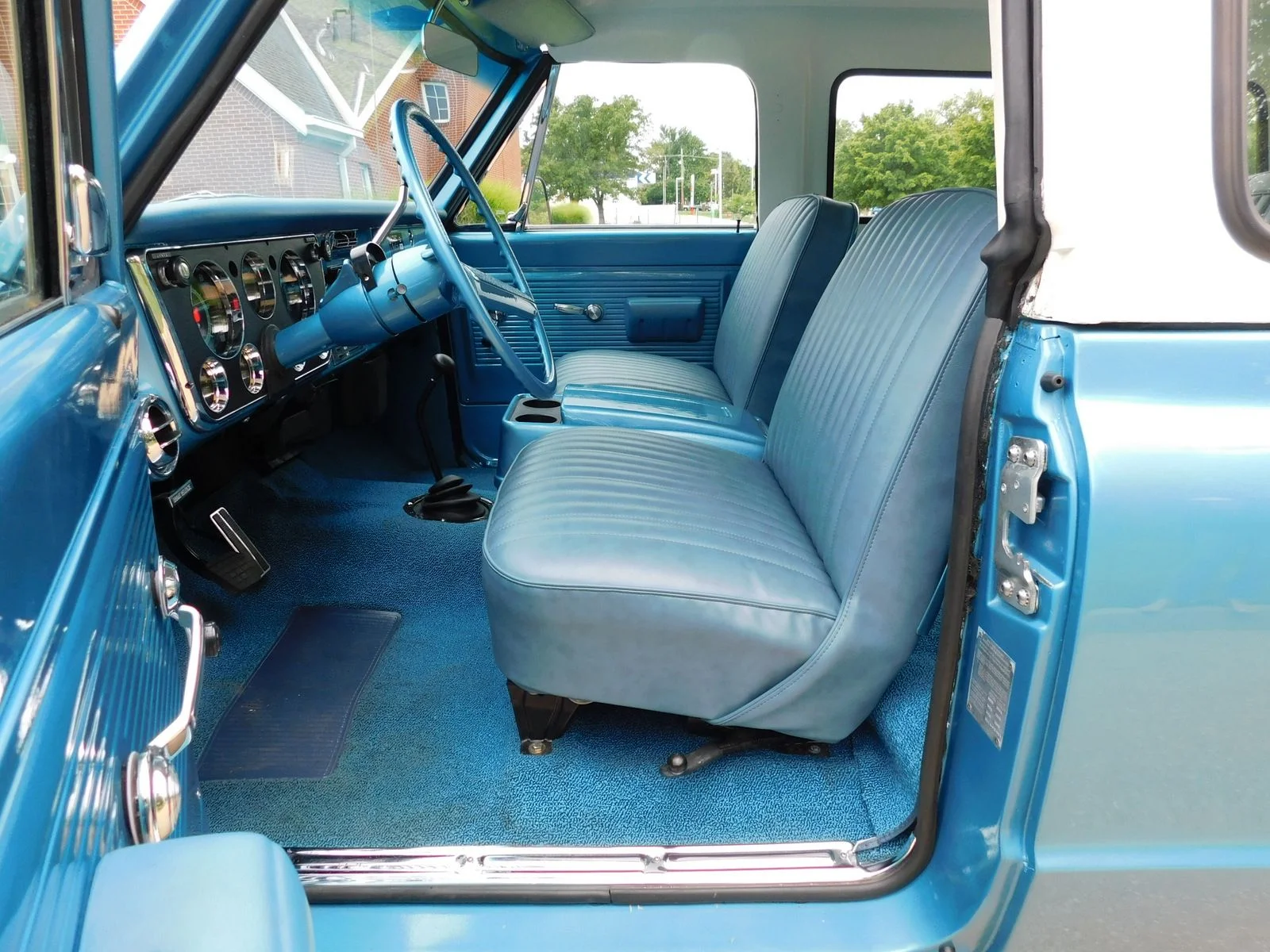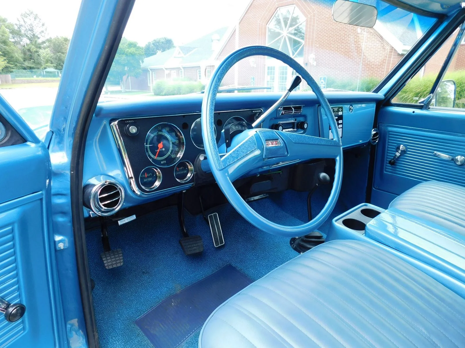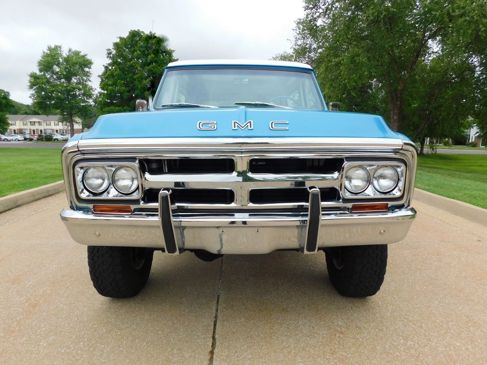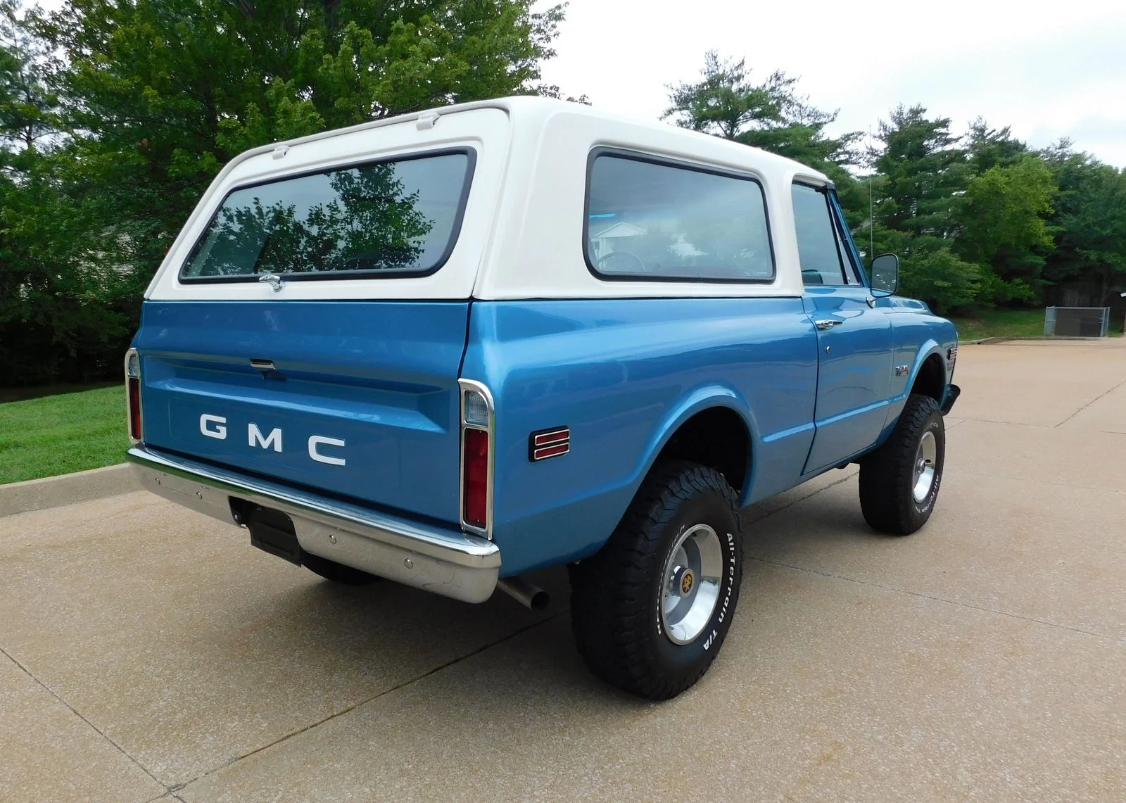 This 1971 GMC Jimmy 4X4 is powered by a 396ci Big Block V8, paired with a 3-speed automatic transmission and a 12-bolt rear end. It’s equipped with power disc brakes, power steering, factory cold A/C, and bucket seats with a center console. The paint has a deep shine with perfect panel fitment. The chrome, trim, and bright work shine in the sun, and the interior looks like new.